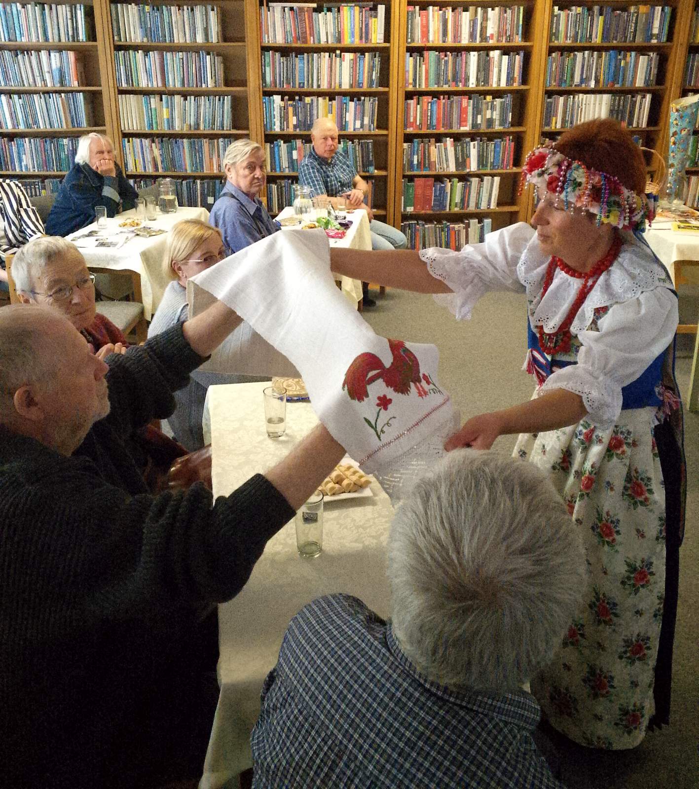 Następna część prezentacji Ewy Przybylskiej-Rosy poświęcona była Podlasiu, na które przeniosła się 15 lat temu, zamieszkując w Daszach obok Kleszczel. Tu także uczestnicy spotkania usłyszeli o lokalnych obrzędach i tradycjach (m.in. zademonstrowane im zostały wielkiej urody stare podlaskie ręczniki) i specjałach kuchni. Istotnym podlaskim wątkiem był ten dotyczący pieczenia chleba (żytniego na zakwasie w piecu chlebowym), w czym Pani Ewa się specjalizuje (jak i prowadzi warsztaty).