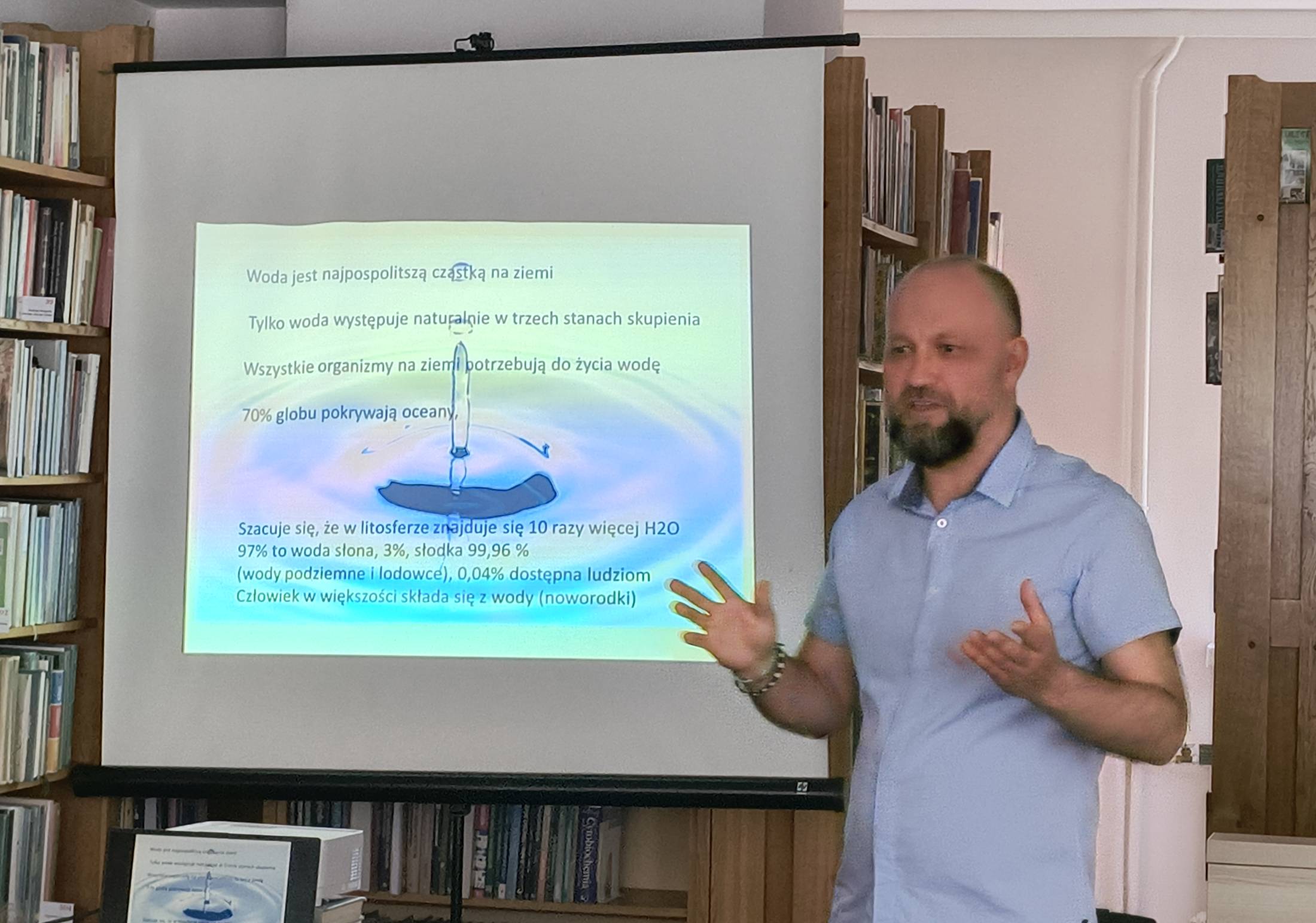 Ponieważ Perebel to rzeka, a rzeka to przede wszystkim woda, nasz Gość przytoczył najpierw kilka faktów dotyczących tej najbardziej rozpowszechnionej na Ziemi cząstki oraz jej właściwości. Następnie opowiedział, jak człowiek poprzez swoje działania (np. budowę infrastruktury czy melioracje) wpływa na - stający się coraz bardziej niekorzystny - bilans wodny.