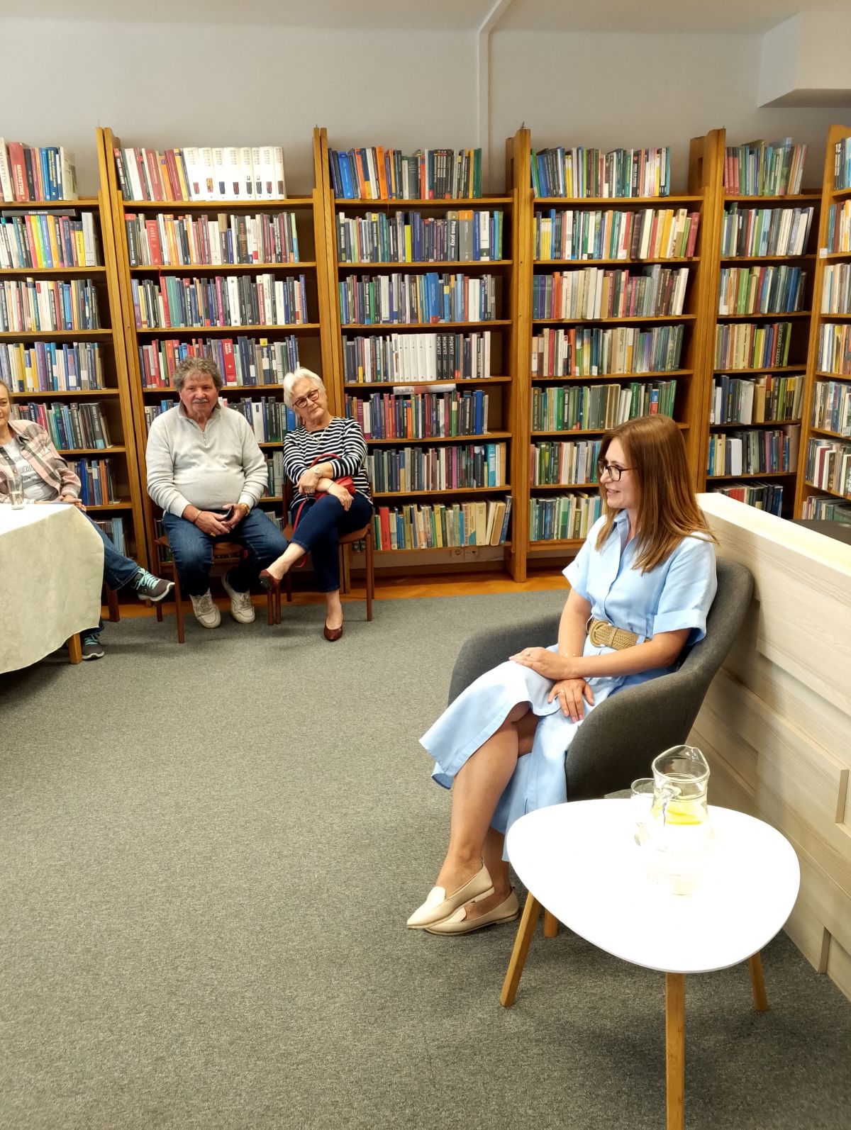 Była to szczególnie ważna promocja książki, bo jej autorka pochodzi z Hajnówki, a biblioteka, jak przyznała na początku spotkania, była ważnym miejscem w jej życiu. Hajnowianie, czytelnicy i rodzina Pani Moniki, którzy licznie przybyli na spotkanie, mogli poznać szczegóły powstania powieści, która już zbiera bardzo przychylne opinie czytelników. Pani Monika opowiedziała również, jak długo dojrzewała do podjęcia decyzji o pisaniu, zdradziła nieco swoje plany na kolejną książkę, która mamy nadzieję, trafi do rąk czytelników w przyszłym roku. Spotkanie autorskie zorganizowaliśmy wspólnie z lokalną księgarnią „Puszczyk”, która zadbała o to, by egzemplarze „Pomogę Ci” z dedykacją autorki trafiły do czytelników.
