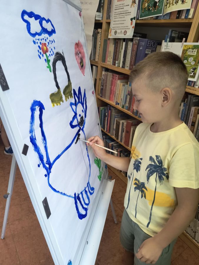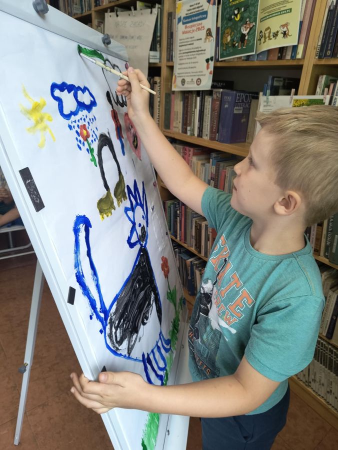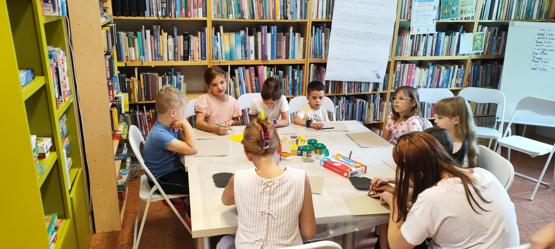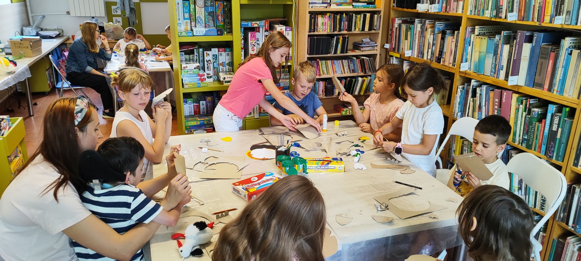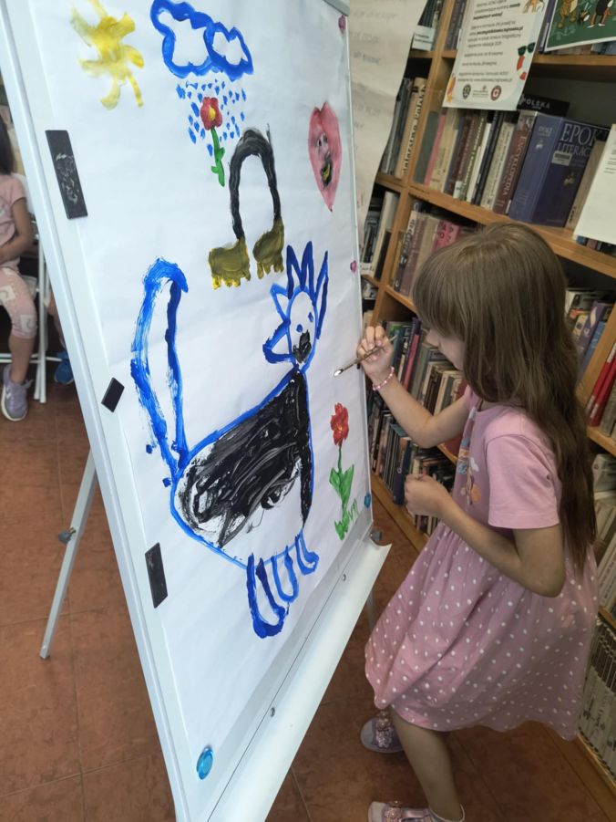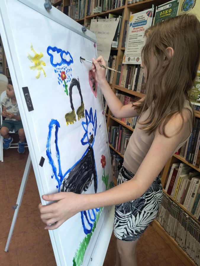 4.08.2025 r. rozpoczęliśmy sierpniową odsłonę Wakacji w Bibliotece. Przez kolejne dni grupa poznawała siebie nawzajem i bohaterów literackich, tworzyła piękne prace oraz wspólnie spędzała czas.