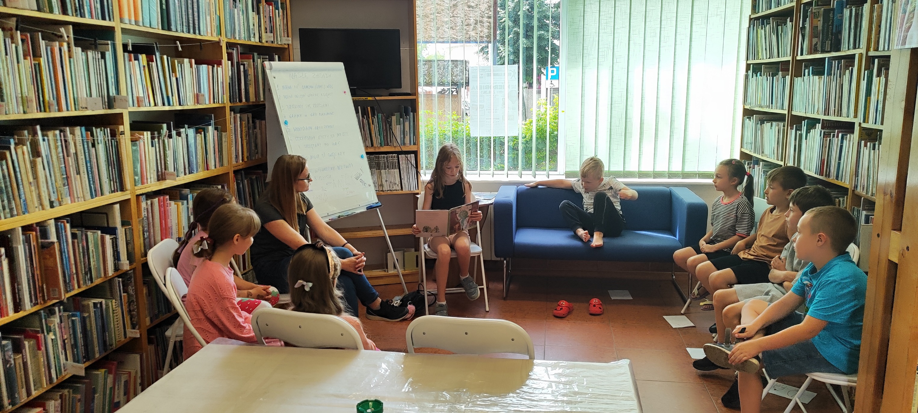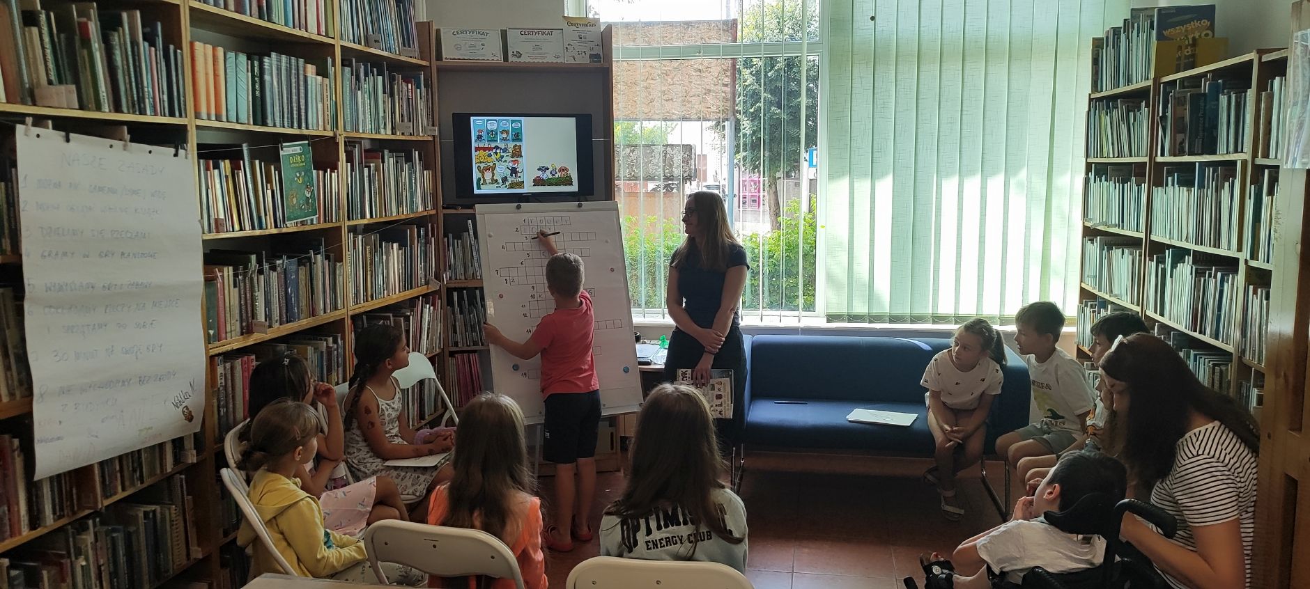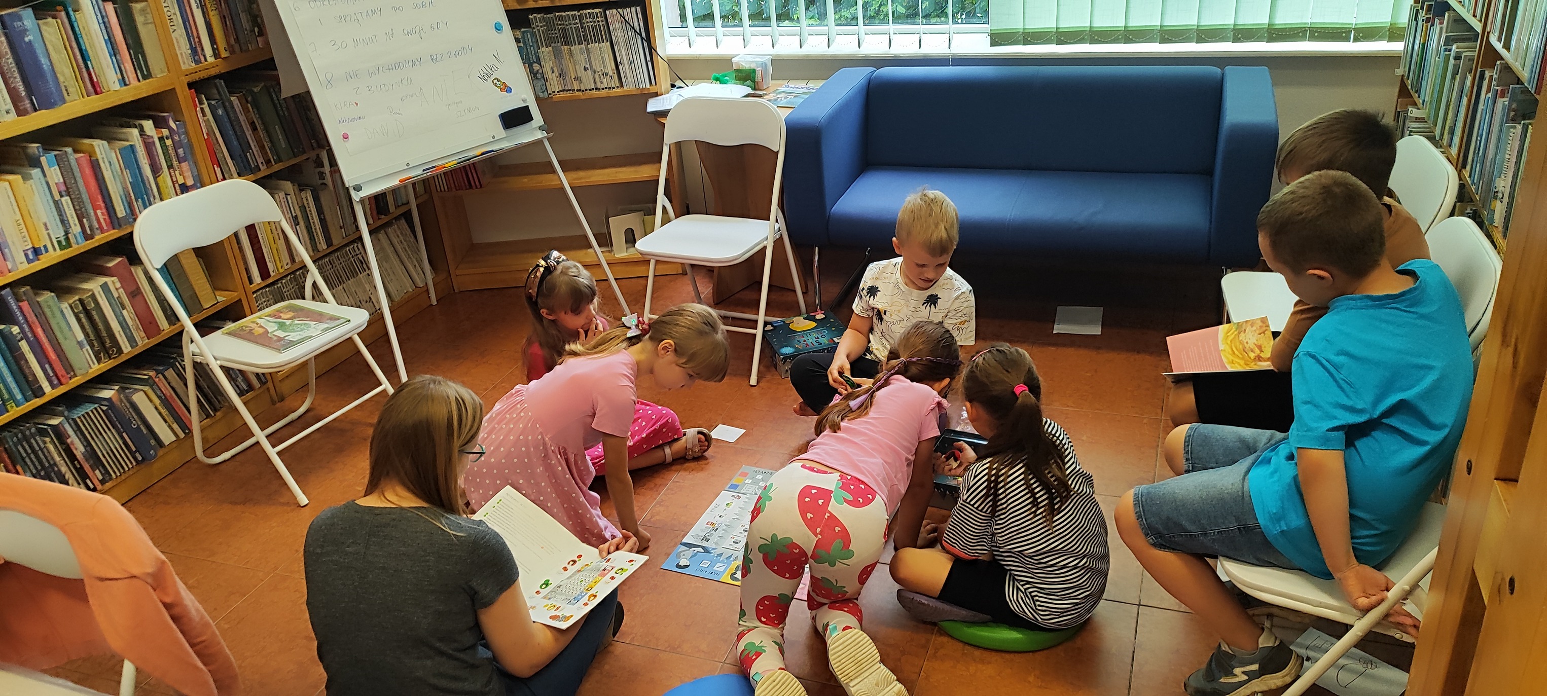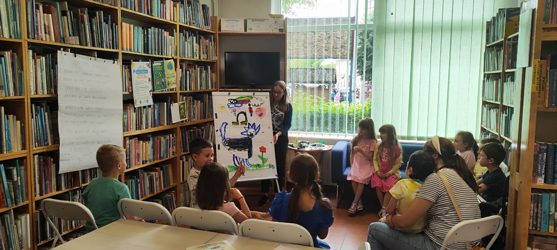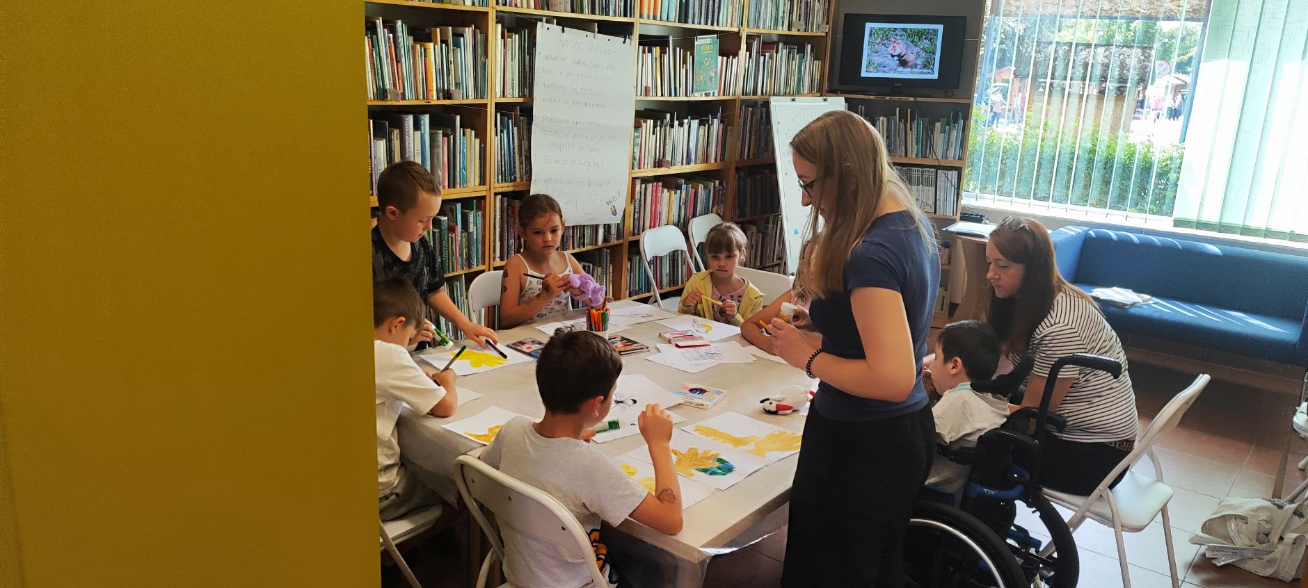 4.08.2025 r. rozpoczęliśmy sierpniową odsłonę Wakacji w Bibliotece. Przez kolejne dni grupa poznawała siebie nawzajem i bohaterów literackich, tworzyła piękne prace oraz wspólnie spędzała czas.
