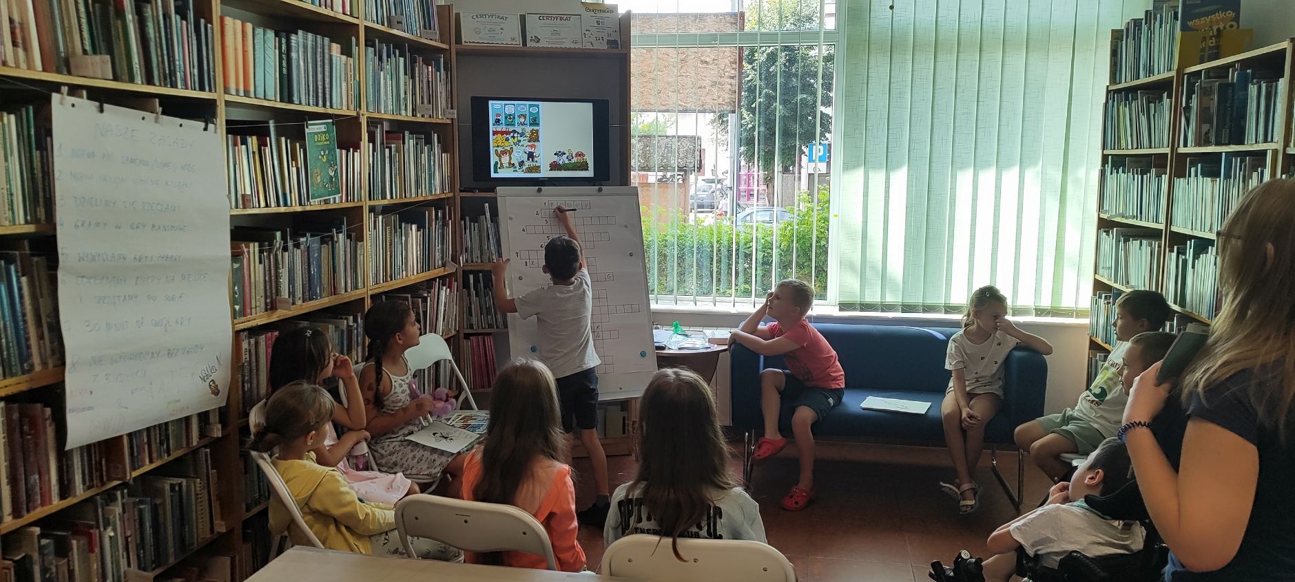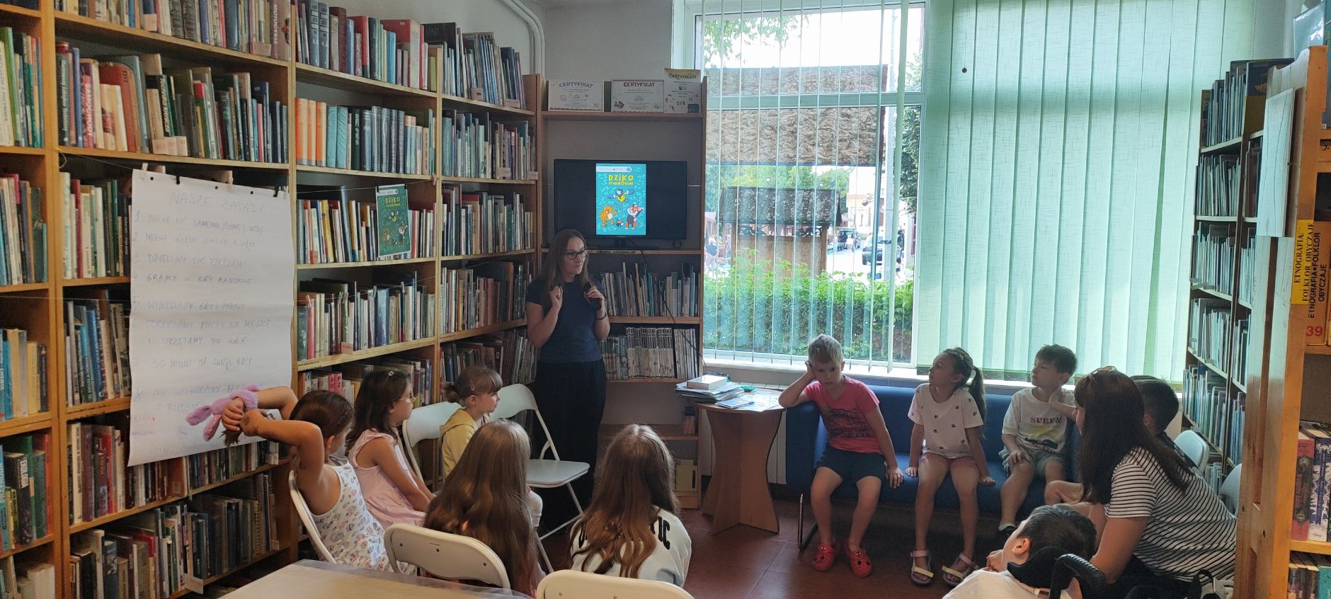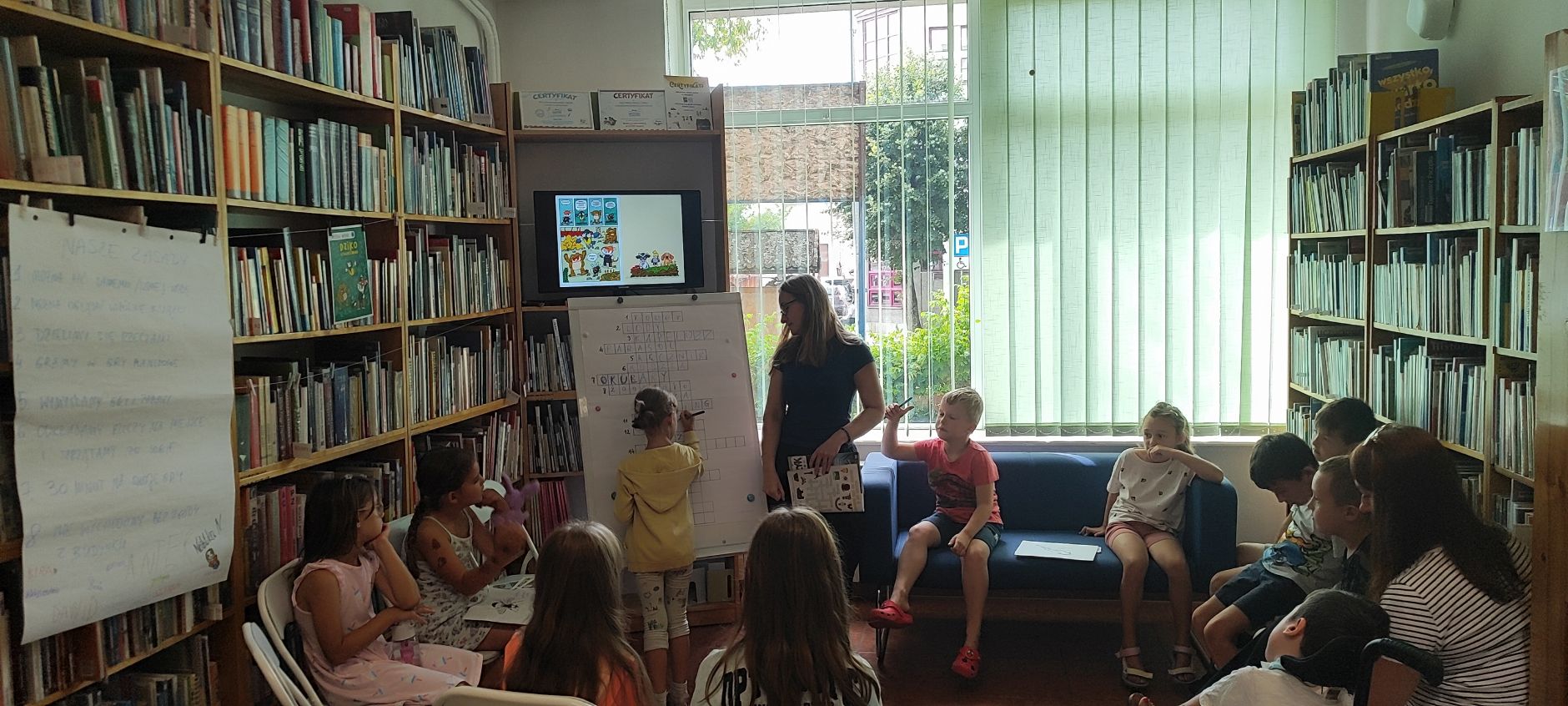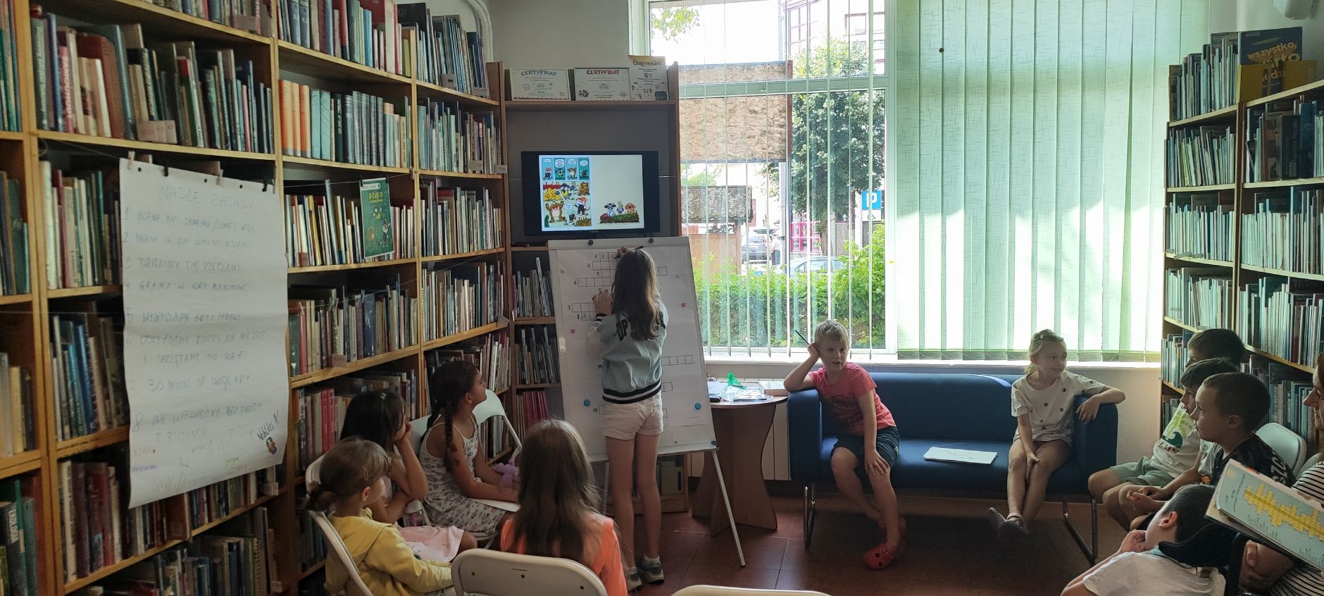 4.08.2025 r. rozpoczęliśmy sierpniową odsłonę Wakacji w Bibliotece. Przez kolejne dni grupa poznawała siebie nawzajem i bohaterów literackich, tworzyła piękne prace oraz wspólnie spędzała czas.