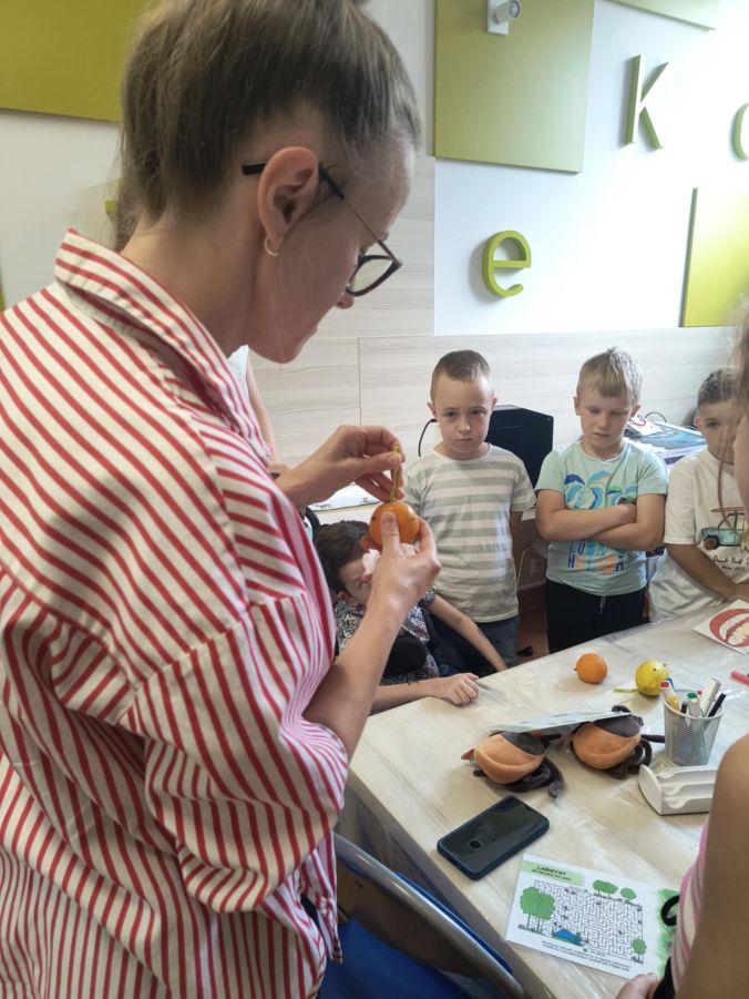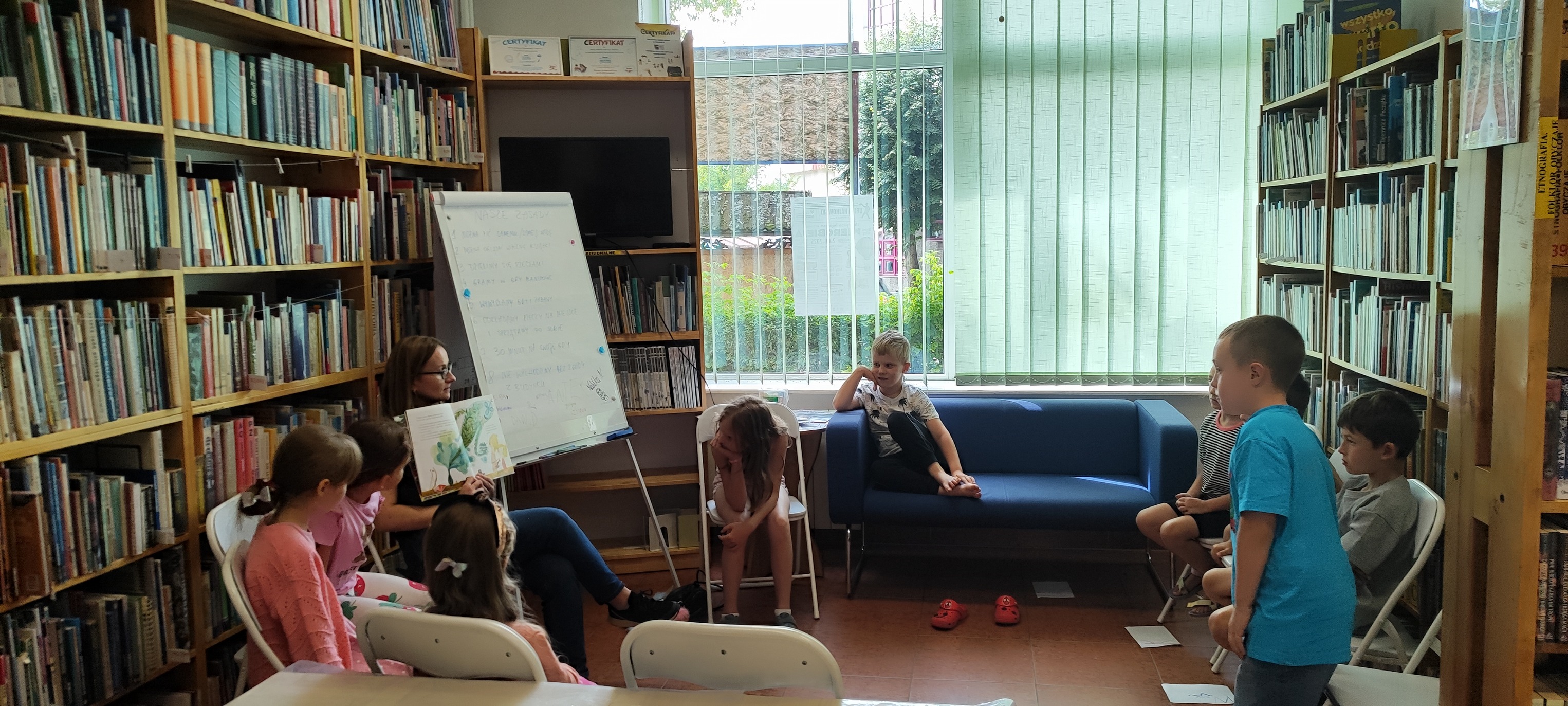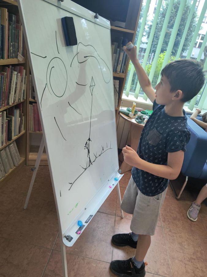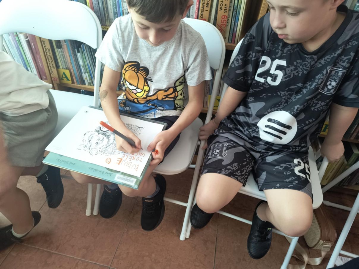 Drugi dzień Wakacji w Bibliotece zaczęliśmy od przeczytania komiksu pt. „Dziko utalentowani" autorstwa Tomasza Samojlika – biologa i autora z Hajnówki. Z jego treści dowiedzieliśmy się, jakie talenty i mocne strony posiadają lokalne gatunki zwierząt - sikora bogatka, trzmiel ziemny, ropucha błotna i chomik europejski. Każdy chętny mógł pokolorować wybranego zwierzaka z komiksu. Komiks T. Samojlika jest częścią ogólnopolskiej kampanii edukacyjnej „Bioróżnorodnie połączeni", zainicjowanej przez Ministerstwo Klimatu i Środowiska.
