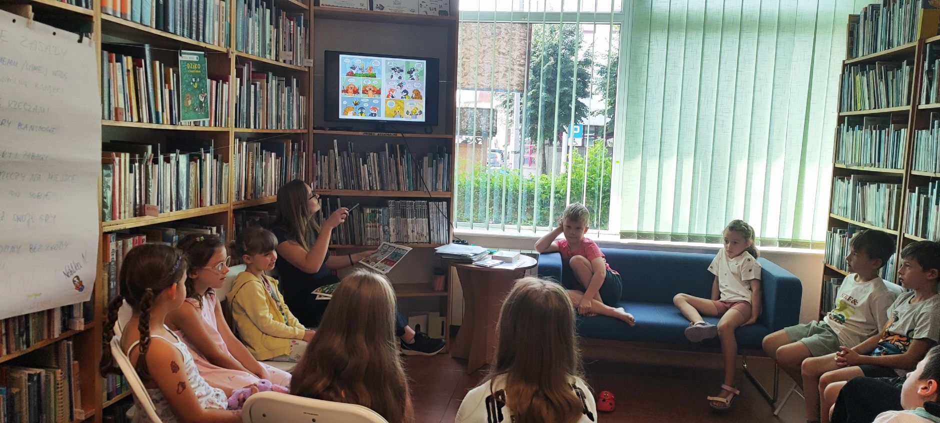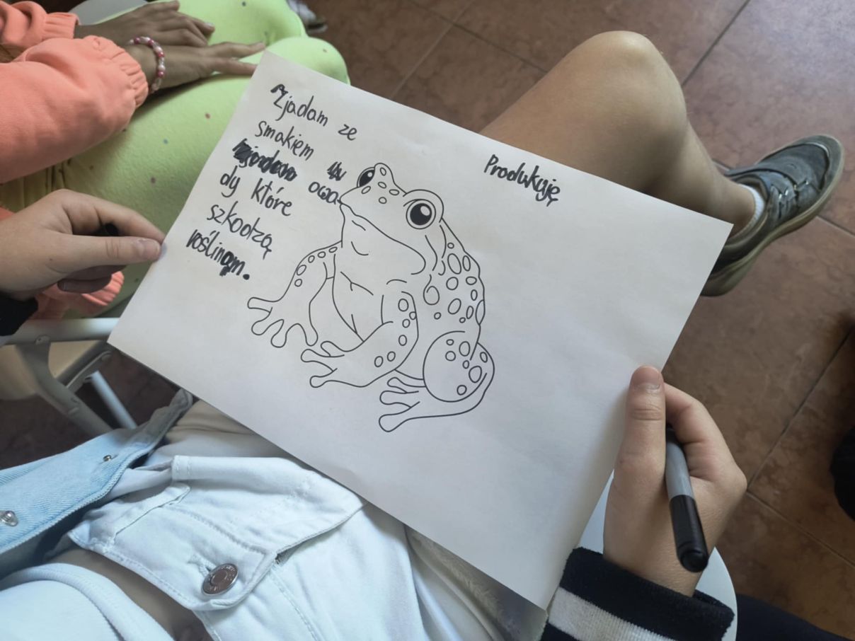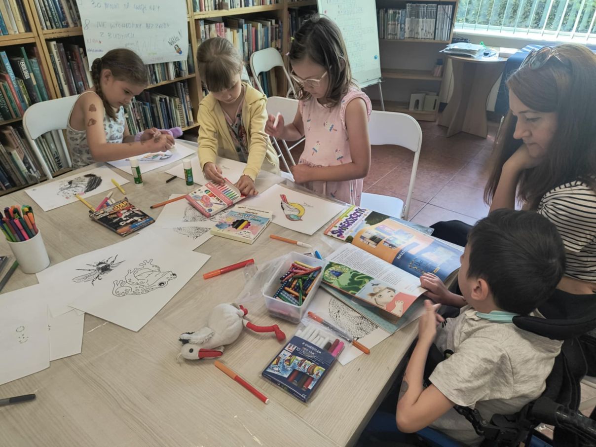 Drugi dzień Wakacji w Bibliotece zaczęliśmy od przeczytania komiksu pt. „Dziko utalentowani" autorstwa Tomasza Samojlika – biologa i autora z Hajnówki. Z jego treści dowiedzieliśmy się, jakie talenty i mocne strony posiadają lokalne gatunki zwierząt - sikora bogatka, trzmiel ziemny, ropucha błotna i chomik europejski. Każdy chętny mógł pokolorować wybranego zwierzaka z komiksu. Komiks T. Samojlika jest częścią ogólnopolskiej kampanii edukacyjnej „Bioróżnorodnie połączeni", zainicjowanej przez Ministerstwo Klimatu i Środowiska.