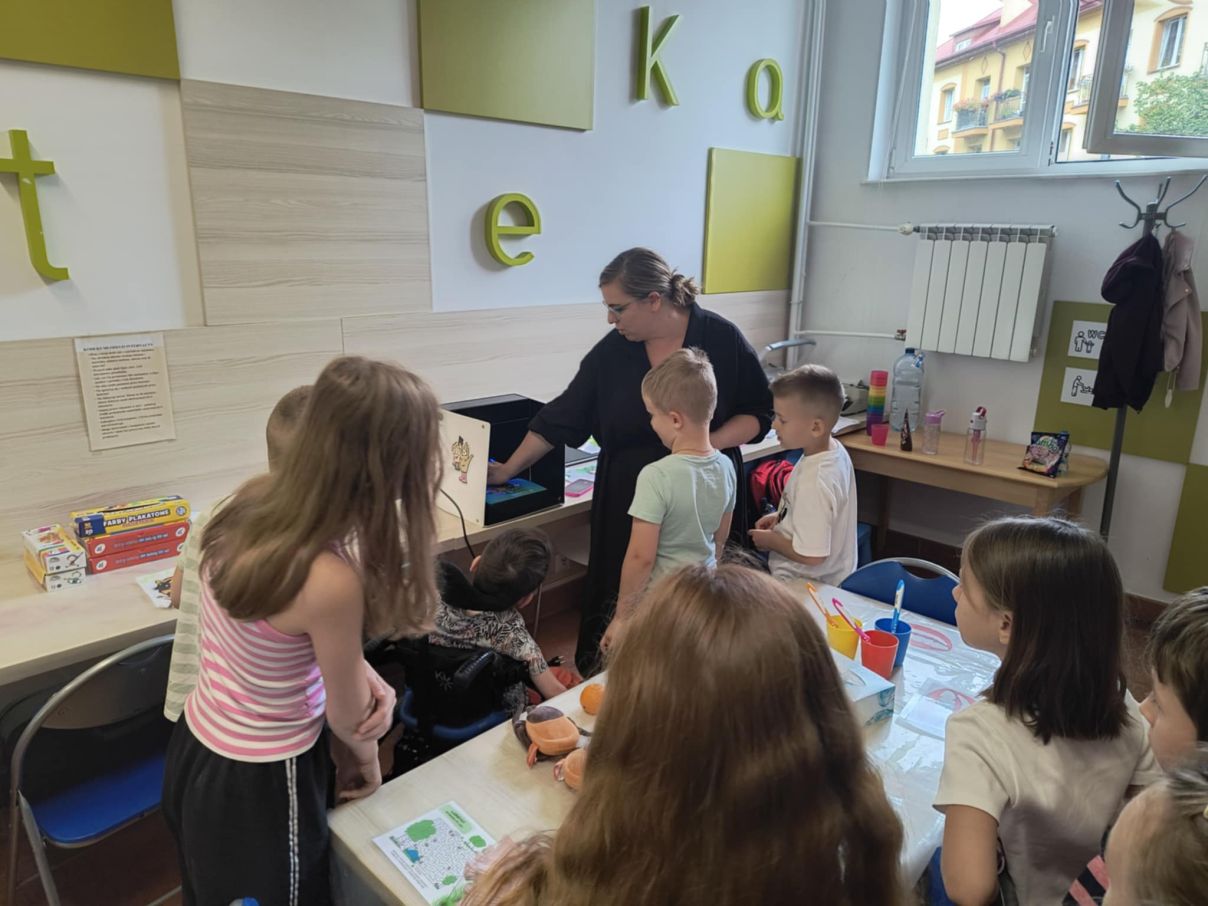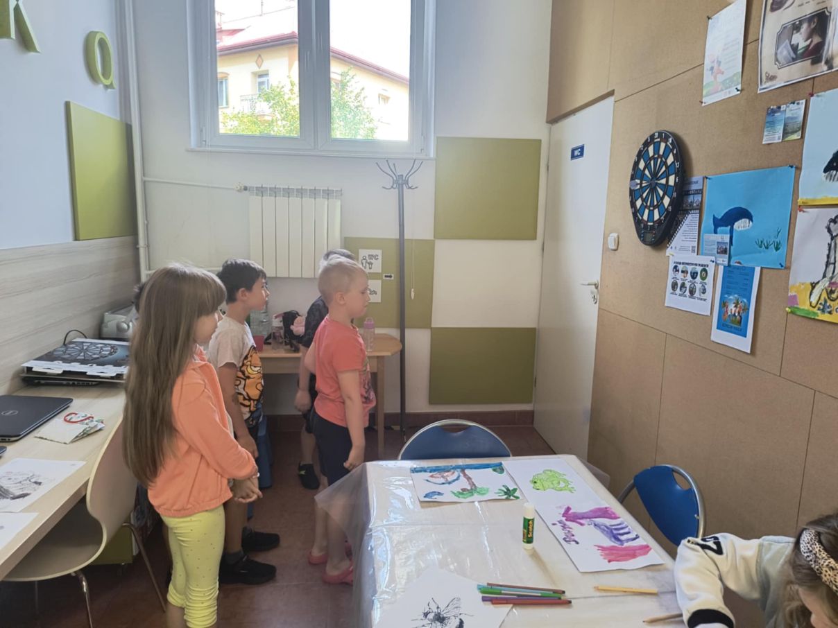 Ponadto dzieci rozwiązywały krzyżówkę, kończyły swoje prace z dnia poprzedniego, grały w rzutki, a na koniec znalazł się czas nawet na krótkometrażową animację.