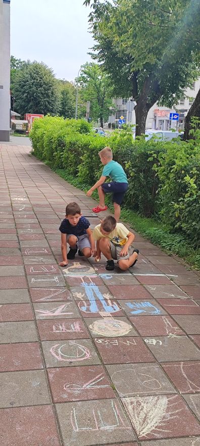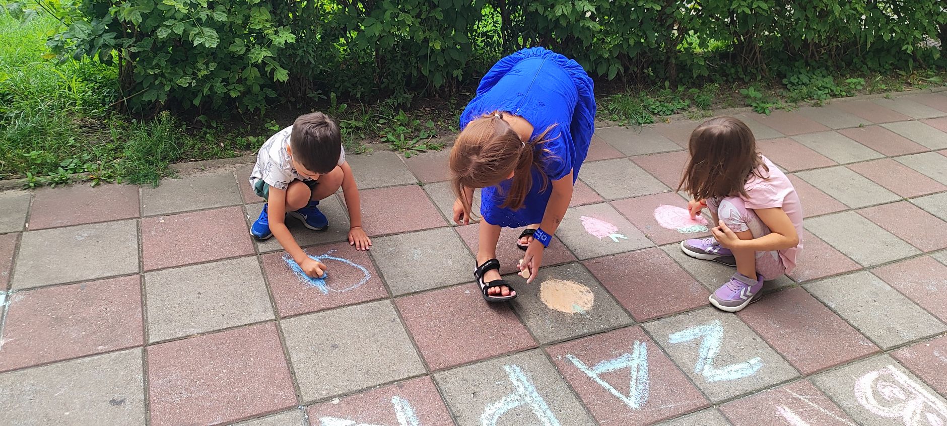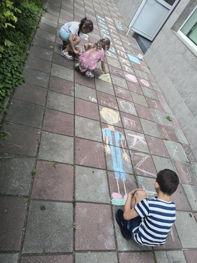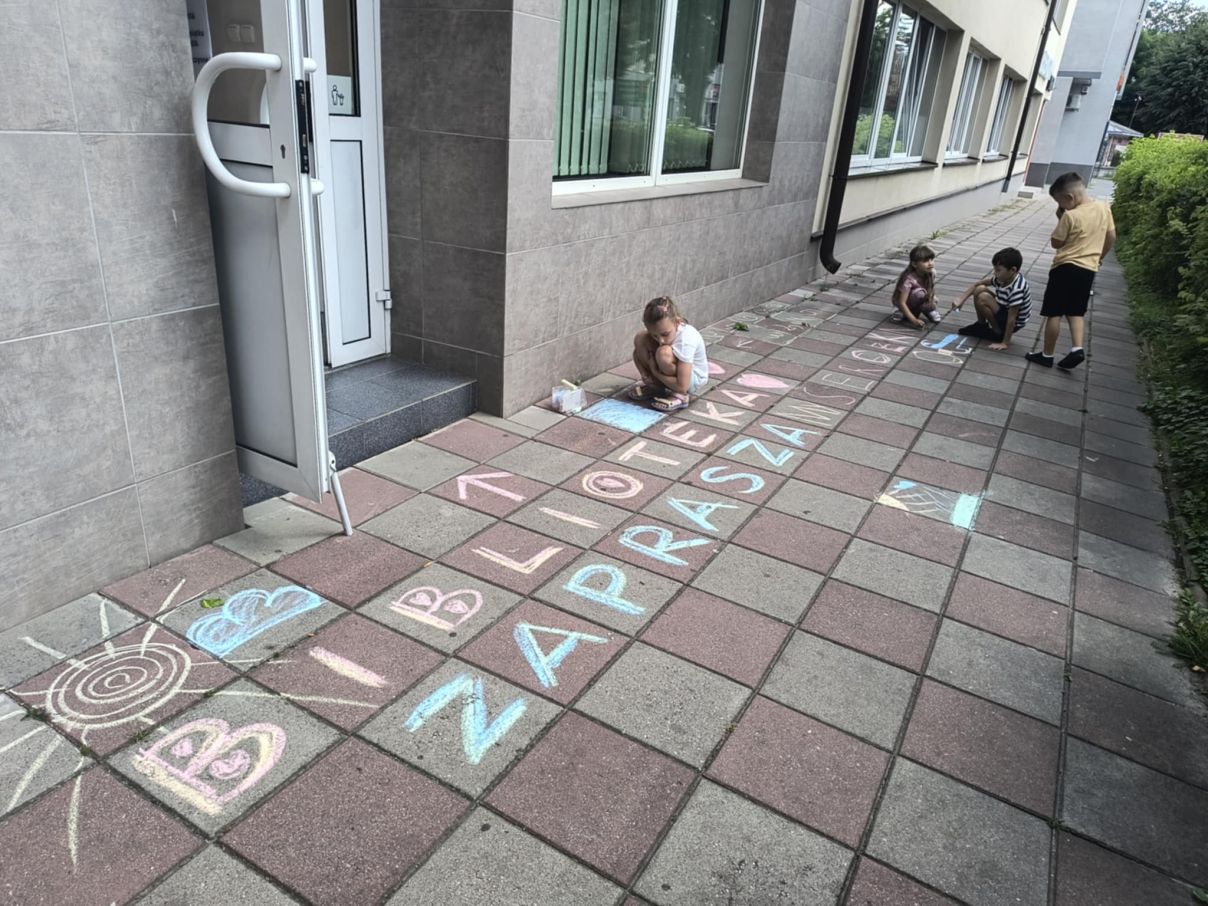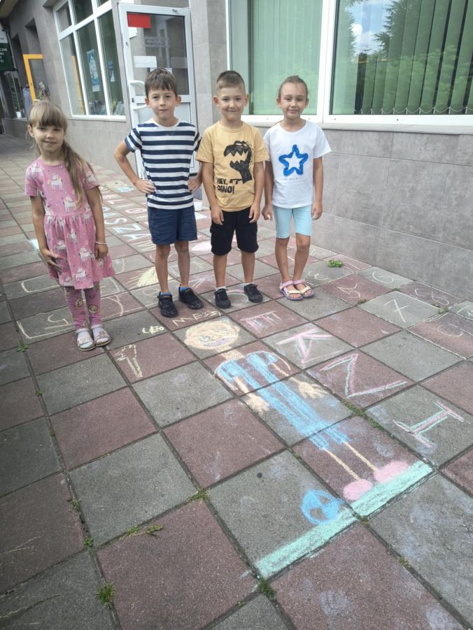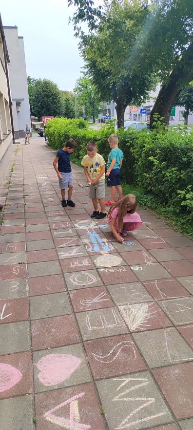 Dzieci grały dziś także w kalambury oraz rysowały kredą.