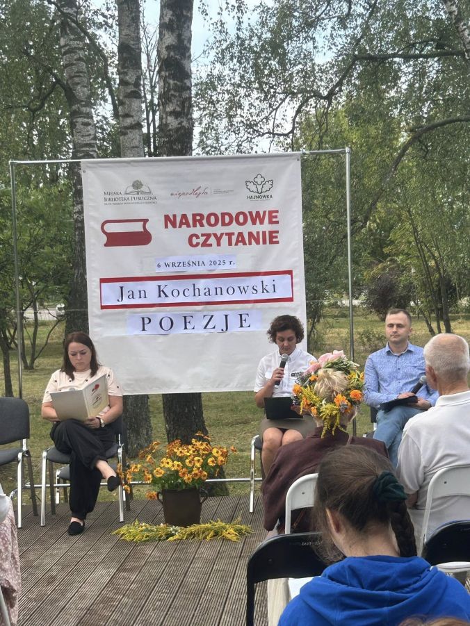 6 września 2025 roku w całym kraju odbyło się Narodowe Czytanie, wspaniała inicjatywa, która tak pięknie łączy Polaków. W naszym mieście uroczystość zorganizowała Miejska Biblioteka Publiczna im. dr. T. Rakowieckiego, w tym roku po raz pierwszy w malowniczej scenerii strefy dobrostanu w Parku Miejskim. Tegoroczną lekturą były poezje Jana Kochanowskiego, ojca literatury polskiej, którego dzieła wciąż zachwycają pięknem języka i aktualnością refleksji.