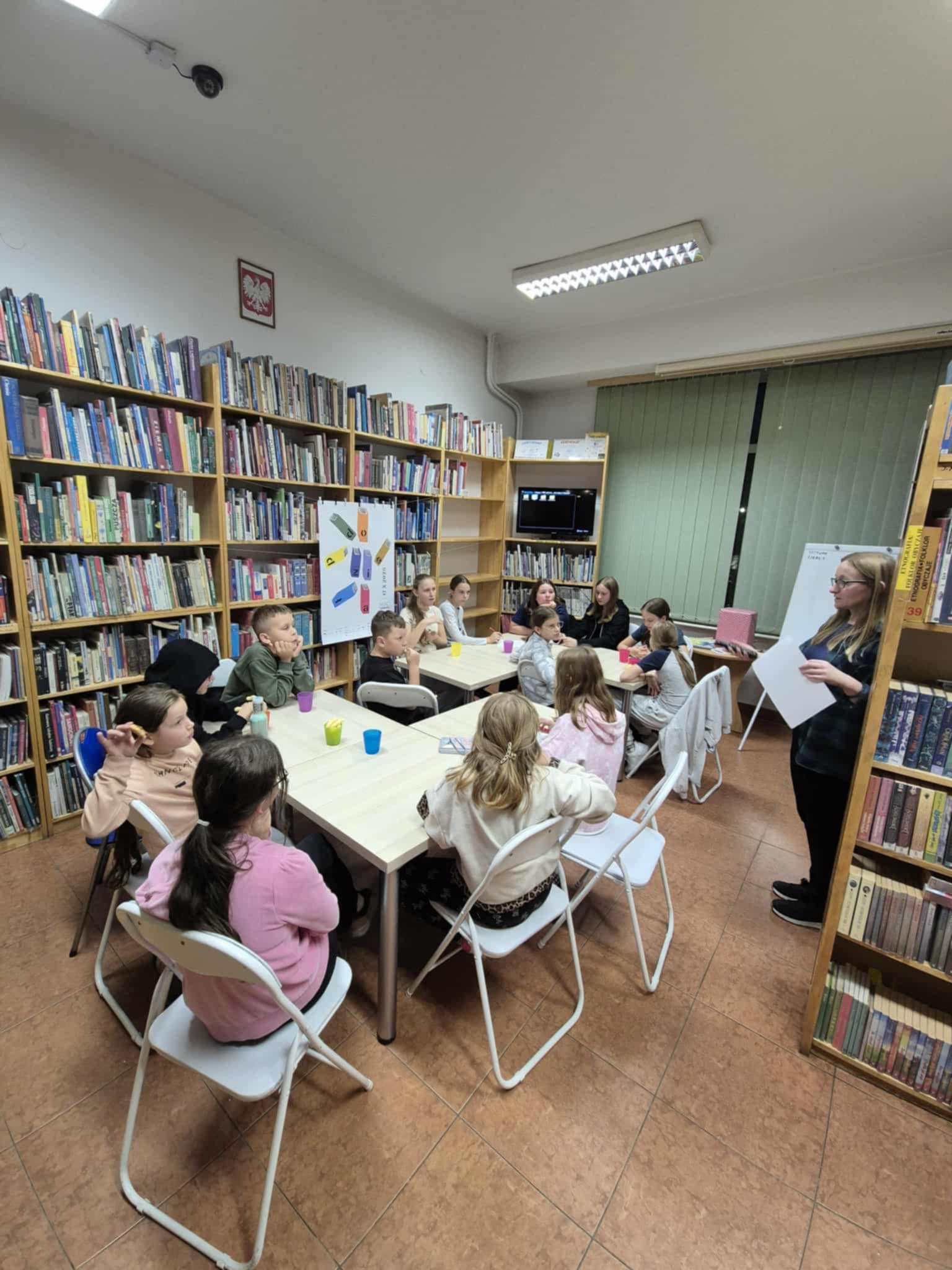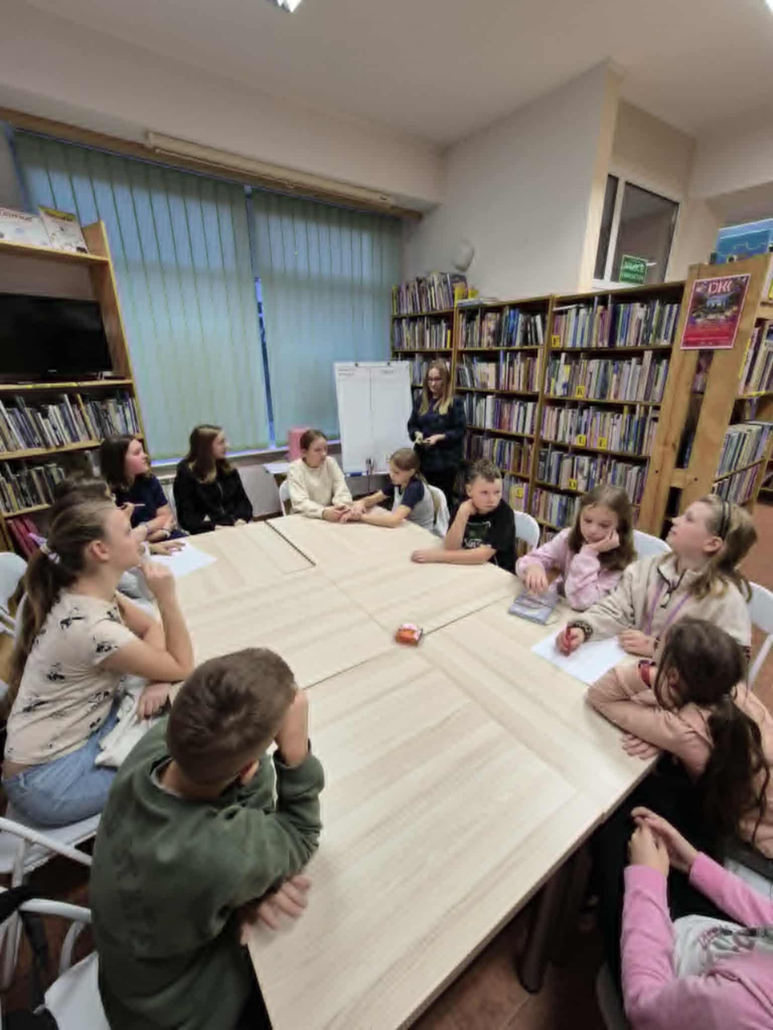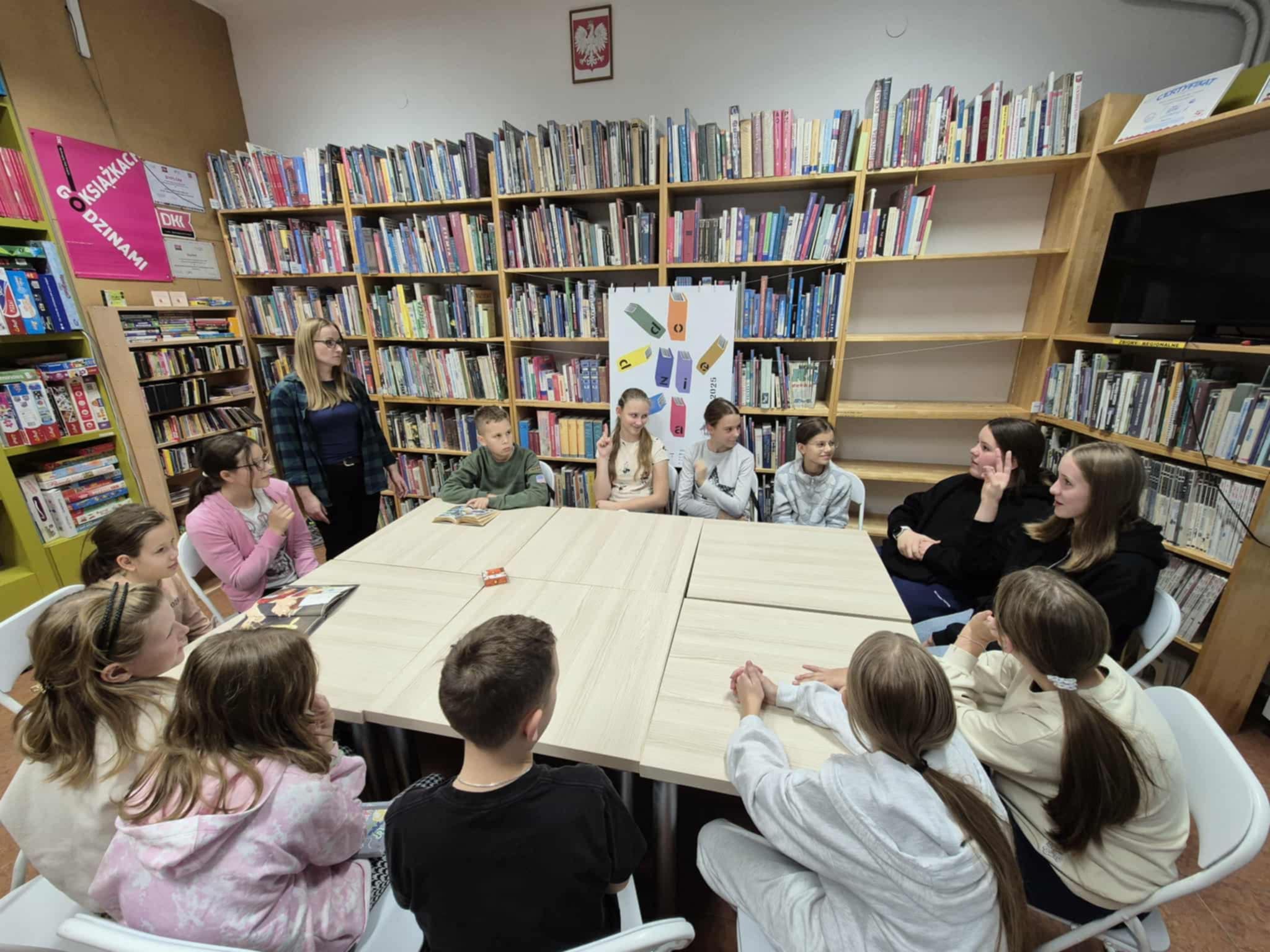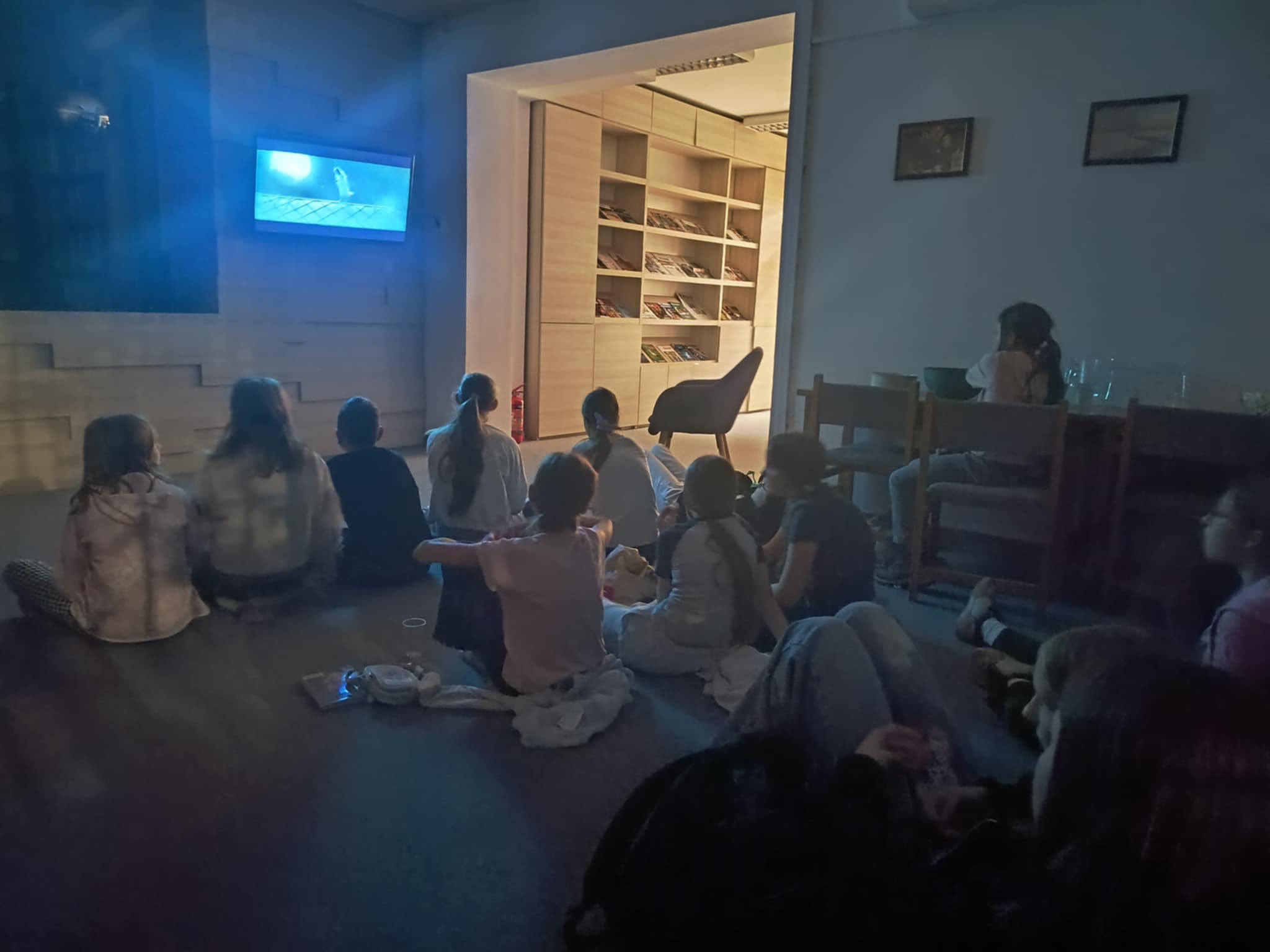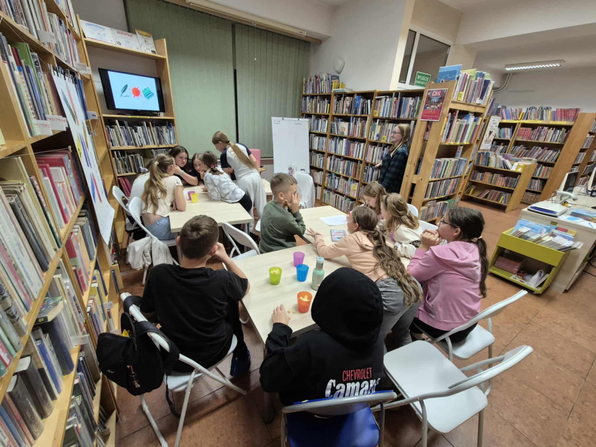 Z kolei w Oddziale dla Dzieci i Młodzieży odbył się turniej wiedzy literacko-bibliotecznej. Czternastu śmiałków, podzielonych na dwie drużyny o wymyślnych nazwach, odgadywało rebusy oraz odpowiadało na pytania dotyczące naszej biblioteki i bohaterów lektur szkolnych. Emocji było co niemiara, a lekki nastrój rywalizacji motywował naszych młodych uczestników do jeszcze większej mobilizacji i współpracy grupowej. Po czterech rundach wspólnej zabawy i małym poczęstunku, przenieśliśmy się do Czytelni dla Dorosłych, by tam obejrzeć film "Biuro Detektywistyczne Lassego i Mai. Rabuś z pociągu".