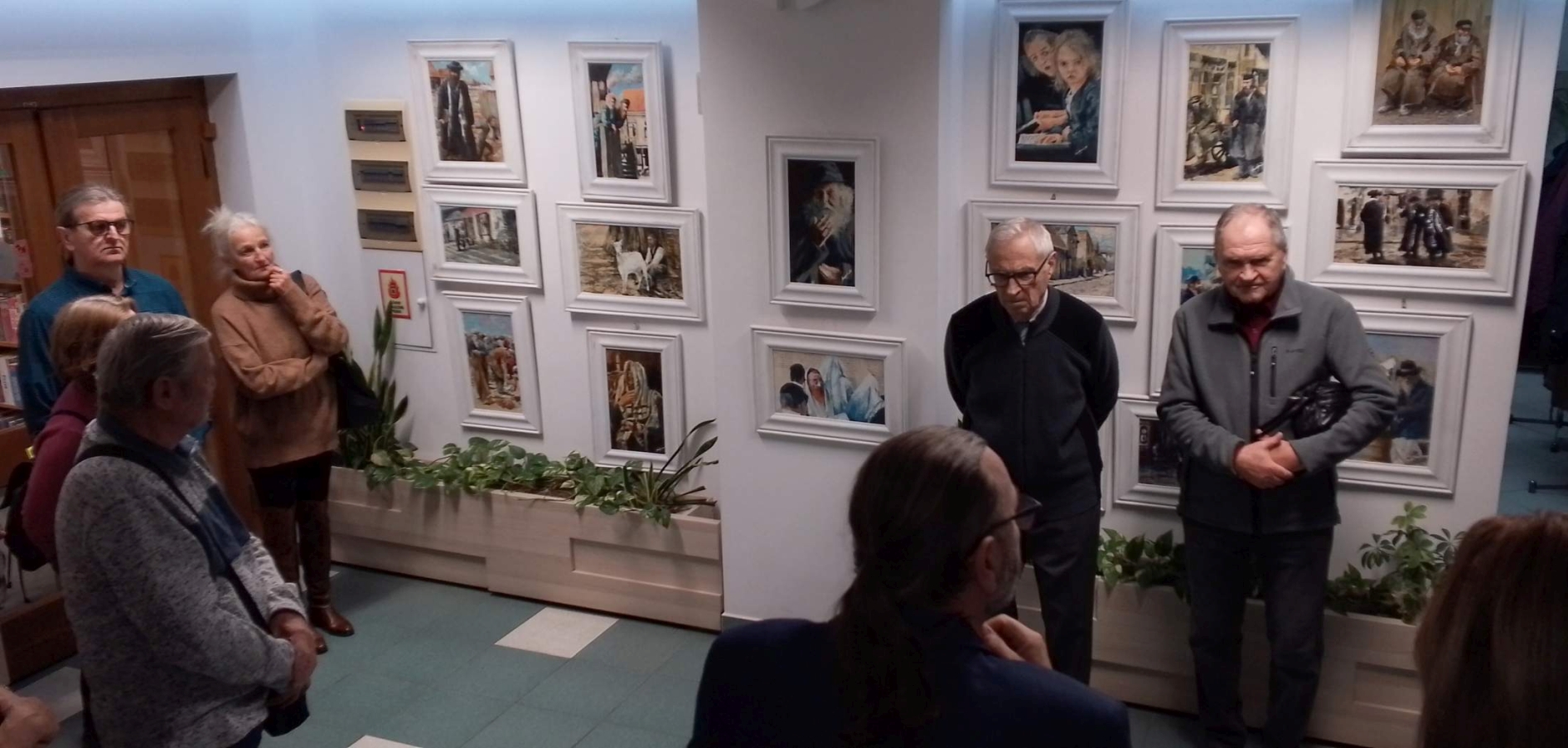 Po oficjalnym powitaniu w holu Biblioteki zabrał głos Artysta, potem zaś kilkoro z obecnych gości. Było nieco wspomnień, przytaczano zabawne historie, opowiadano dykteryjki. Następnie licznie przybyli uczestnicy oglądali prace Pana Zbigniewa na parterze, potem zaś na piętrze, komentując i wymieniając się spostrzeżeniami.