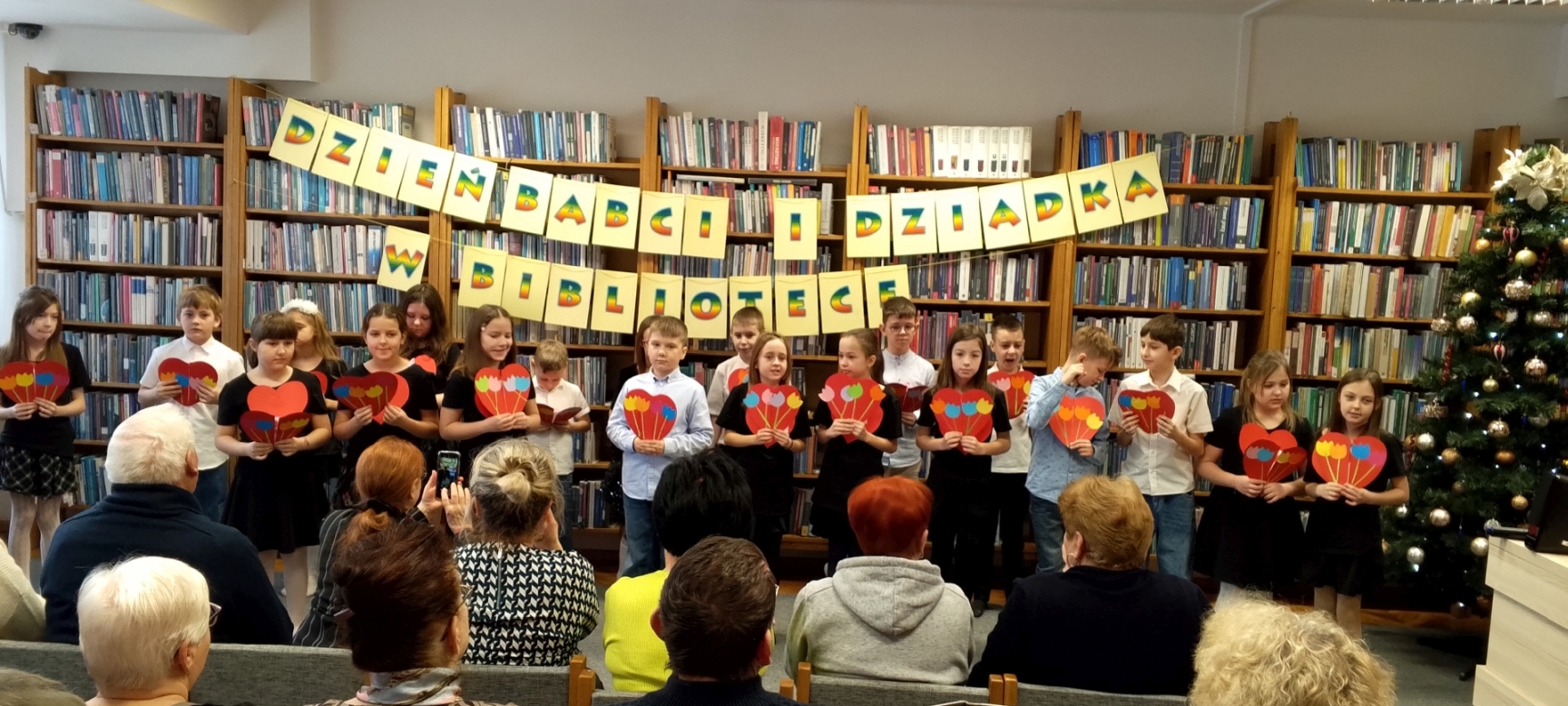 Międzypokoleniowe spotkanie „Dzień Babci i Dziadka w bibliotece” to coroczna uroczystość, którą organizujemy we współpracy z hajnowskimi szkołami i przedszkolami z okazji przypadających w styczniu świąt – Dniach Babci i Dziadka. W tym roku to trzecioklasiści ze Szkoły Podstawowej nr 1 im. J. Kusocińskiego, wspólnie z wychowawczynią Panią Ireną Wierzbowicz, przygotowali krótki występ artystyczny, na który zaprosili swoich ukochanych dziadków.