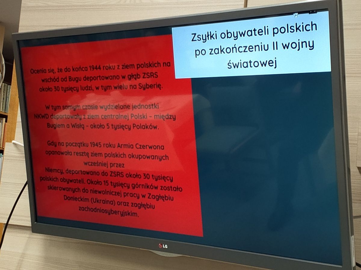 Materiały do prezentacji przygotowała Pani Marta Chmielińska, pasjonatka historii naszego regionu. Uczestnicy spotkania dzięki prelegentce mieli możliwość zapoznania się z fragmentami nigdzie nie publikowanych, odręcznie spisanych wspomnień tych, którzy byli zesłani na Syberię, a następnie wstąpili do Armii Andersa.
