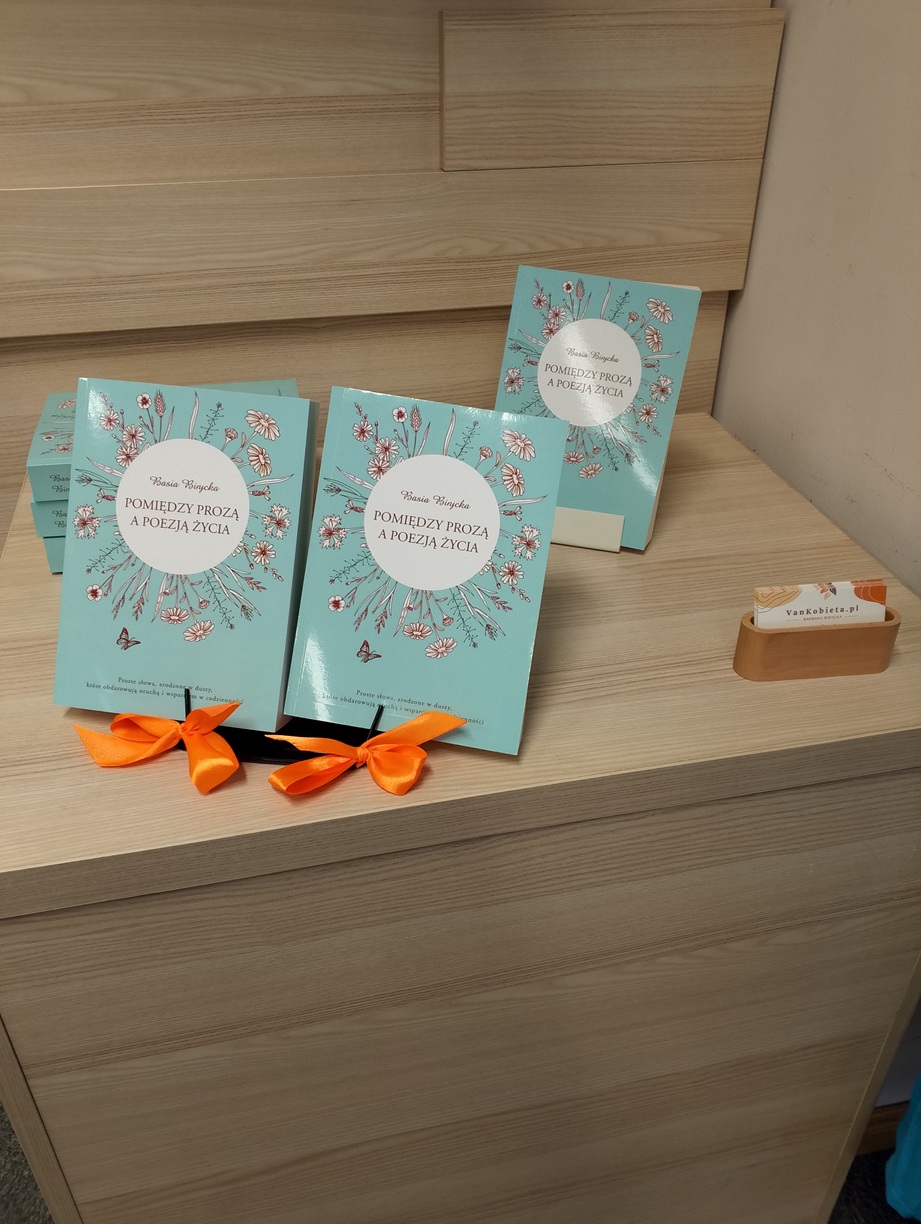P. Basia po długim okresie pracy w korporacji, ale też trudnym okresie związanym z przewlekłą chorobą (ZZSK), wypaleniem zawodowym oraz walką z depresją, prowadzi obecnie własną firmę i realizuje swoje marzenie związane z jej pasją pisania. Z tej pasji oraz doświadczeń życiowych powstała prezentowana na spotkaniu książka pt. „Pomiędzy prozą a poezją życia”.