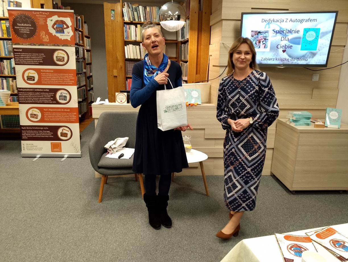 Spotkaniu towarzyszyła też prezentacja tworzonych przez p. Basię toreb o autorskiej nazwie „VanNerka”. VanNerki są twórczym efektem „drugiego życia” podlaskich tkanin – kap, narzut, makatek – będąc jednocześnie piękną i pożyteczną promocją podlaskiej kultury, jednocześnie tej dawnej i dzisiejszej.
