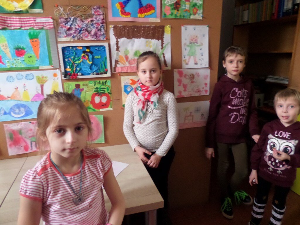 Wystawa prac plastycznych wykonanych przez dzieci podczas ferii zimowych. |