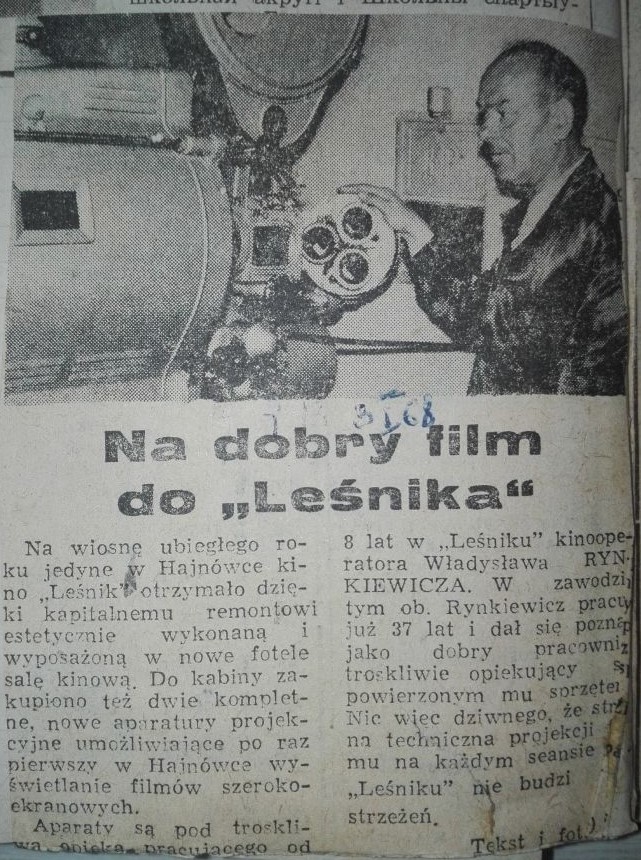 Aparaty są pod troskliwą opieką pracującego od 8 lat w "Leśniku"kinooperatora Władysława Rynkiewicza. W zawodzie tym ob. Rynkiewicz pracuje już 37 lat i dał się poznać jako dobry pracownik, troskliwie opiekujący się powierzonym mu sprzętem. Nic więc dziwnego, że strona techniczna projekcji filmu na każdym seansie w "Leśniku" nie budzi zastrzeżeń.