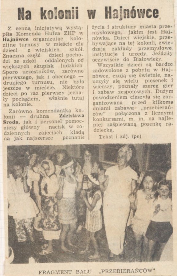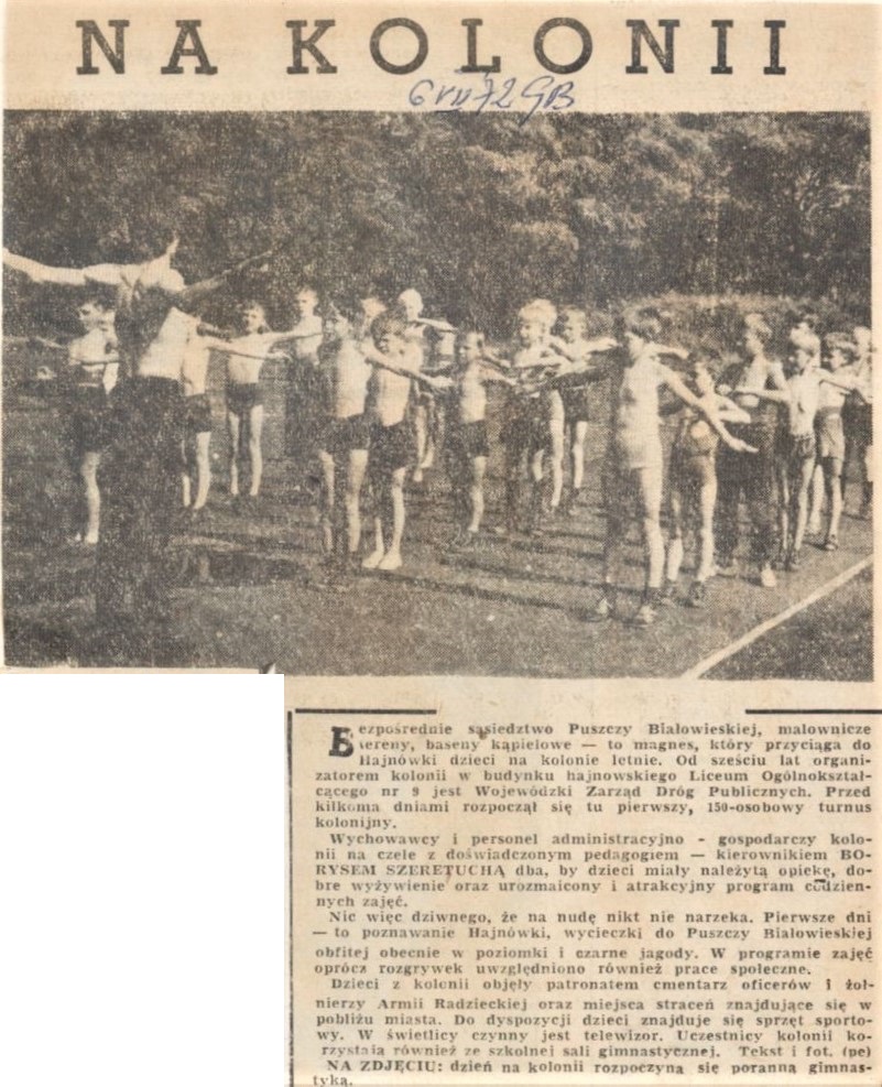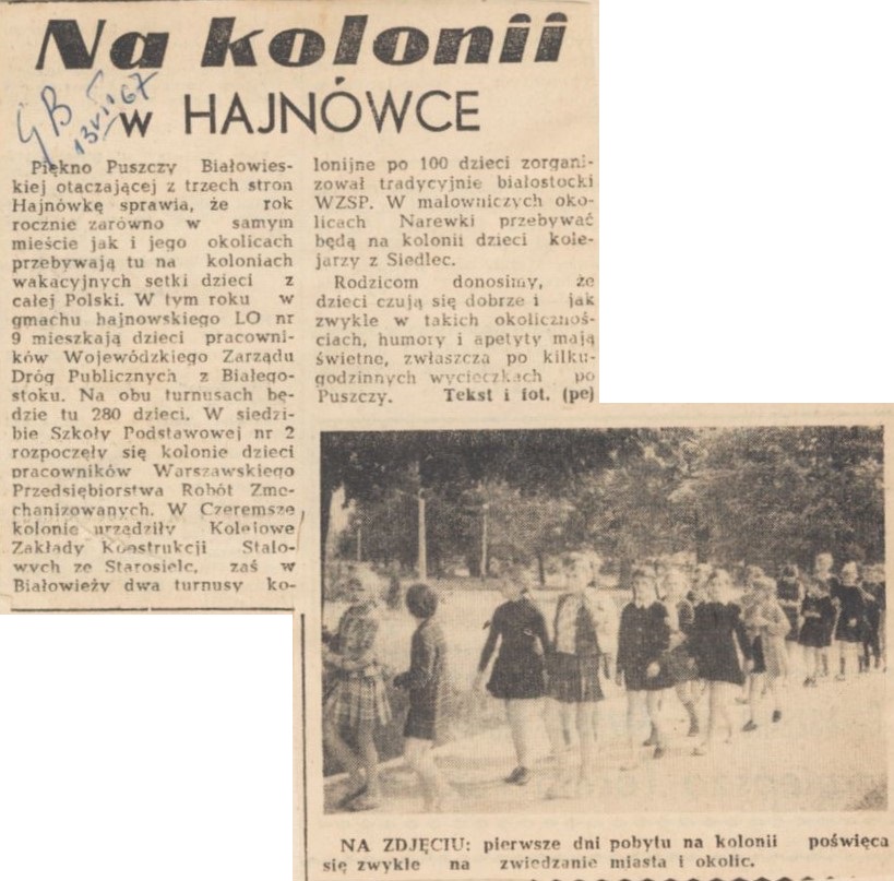 Tekst artykułu: NA KOLONII W HAJNÓWCE (13.07.1967, Gazeta Białostocka)