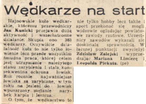 Tekst artykułu: WĘDKARZE NA START (Gazeta Białostocka 1971)