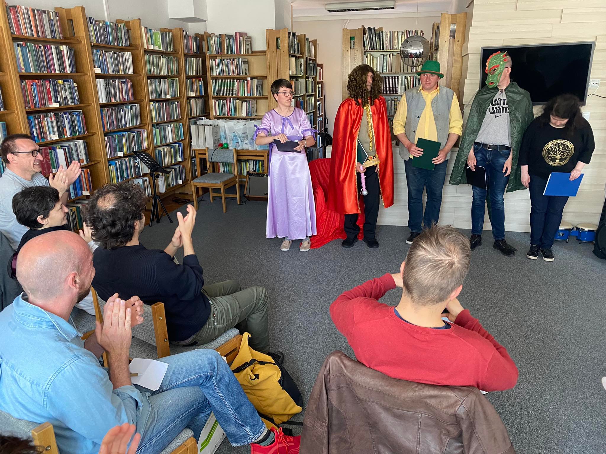 Rozpoczęliśmy od części artystycznej; w wykonaniu podopiecznych naszych hajnowskich instytucji obejrzeliśmy skecz, będący adaptacją skeczu kabaretu Potem, oraz chóralnie wykonane dwie piosenki - jedną po polsku i jedną po włosku.