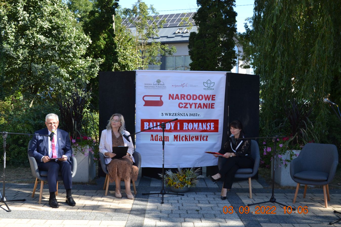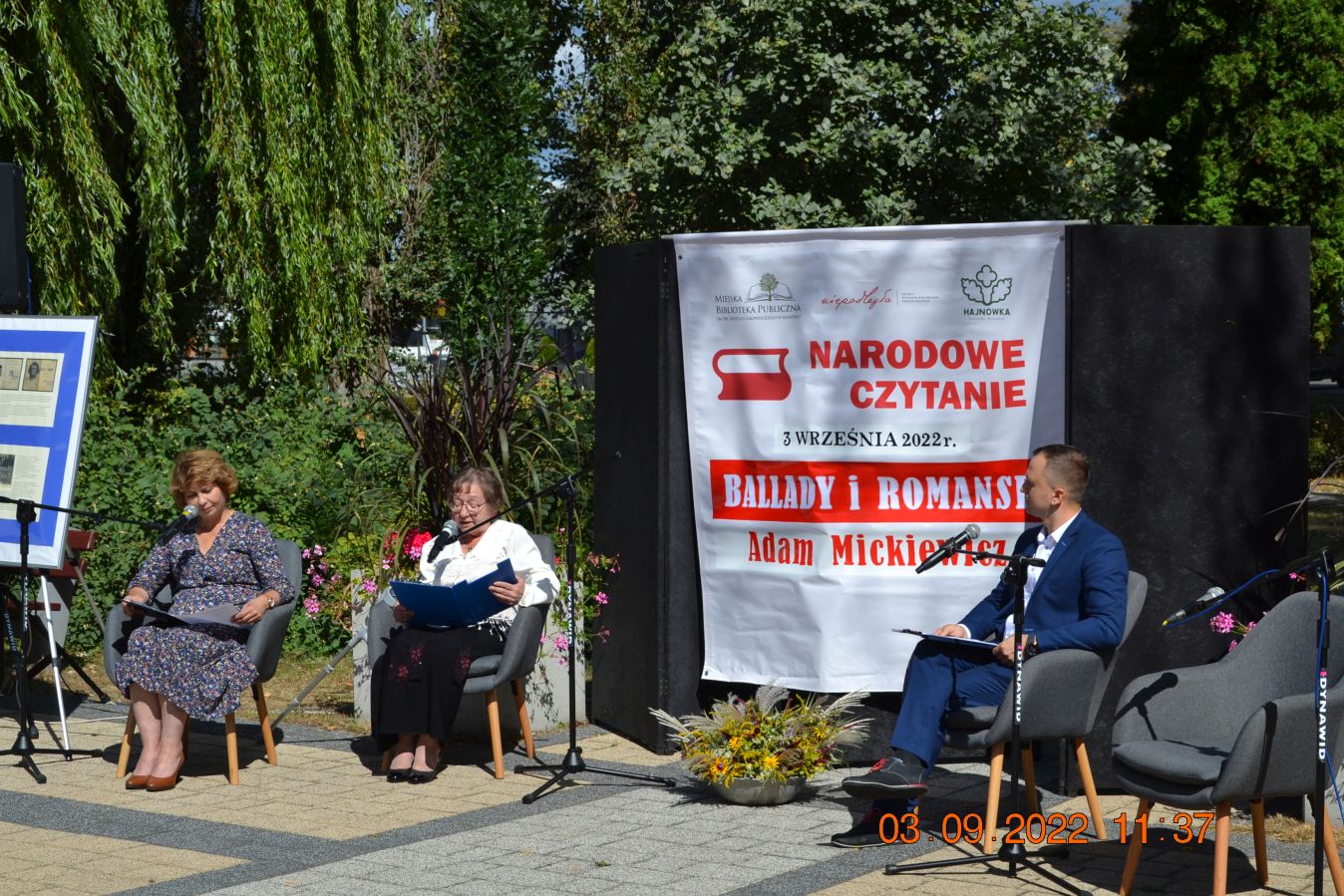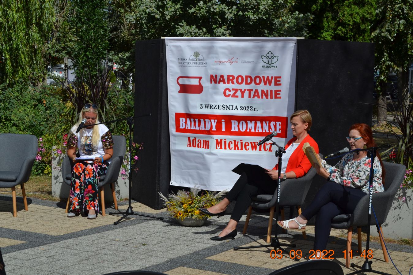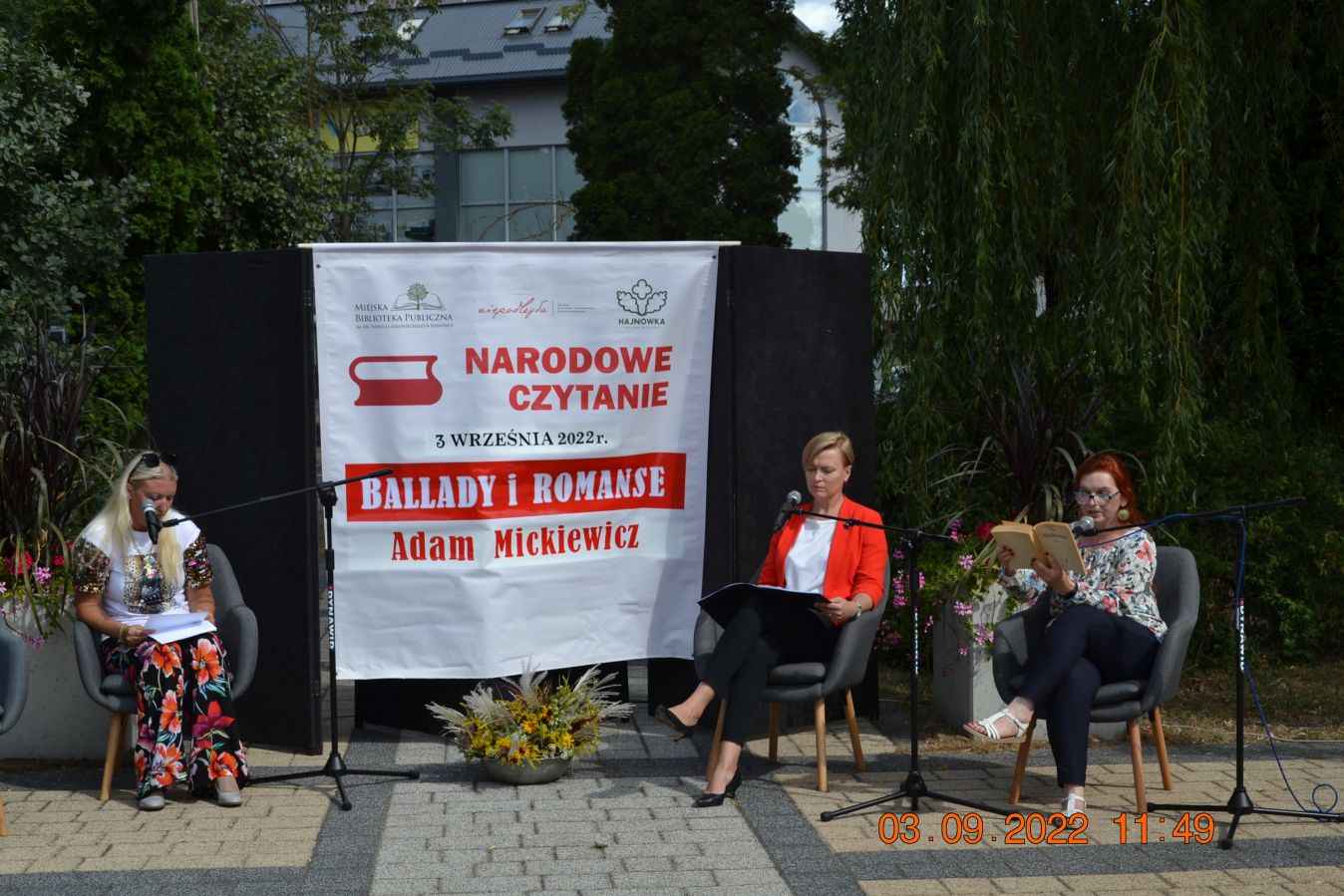 Tegoroczną lekturą były „Ballady i romanse” Adama Mickiewicza, wydane dwieście lat temu w Wilnie, które wyznaczają początek polskiego romantyzmu i po dziś dzień zachwycają wyjątkową aurą, niezrównanymi opisami natury i mądrością opartą na ludowej prawdzie. W pięknej scenerii skweru, otuleni ciepłem wrześniowego słońca, nasi czytający zaprezentowali utwory z tomu „Ballad i romansów”, zachwycając warsztatem i dojrzałością interpretacji. Mogliśmy wysłuchać „Świtezianki” w wykonaniu burmistrza Jerzego Siraka, wice starościny Joanny Kojło i wójt gminy Hajnówka – Lucyny Smoktunowicz. Balladę „Powrót taty” przeczytali podopieczni Warsztatu Terapii Zajęciowej, „Kurhanek Maryli” wybrzmiał w interpretacji przedstawicieli Środowiskowego Domu Samopomocy. Z kolei „Rybkę” zaprezentowała delegacja Polskiego Związku Niewidomych Koła Terenowego w Hajnówce, odczytując fragment tekstu napisaną alfabetem Braille’a. Tegoroczna edycja jeszcze mocniej utwierdziła nas w przekonaniu, że mamy niezwykle utalentowaną młodzież szkolną. Doskonała interpretacja „Pani Twardowskiej” uczennic ze Szkoły Podstawowej Nr 3, zaskakująco dojrzałe wykonanie mrocznej ballady „Lilije” przez Małgorzatę Durzyńską – uczennicę Szkoły Podstawowej Nr 1, czy „Dudarza”, którego odczytali przed publicznością uczniowie Szkoły Podstawowej Nr 2 Michał Zajkowski i Kajetan Szwed, napawają dumą i satysfakcją.