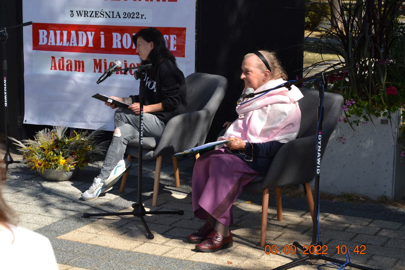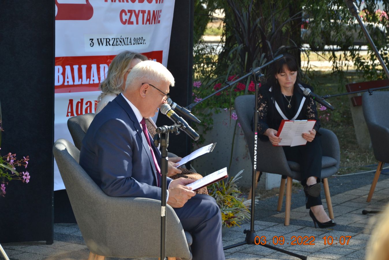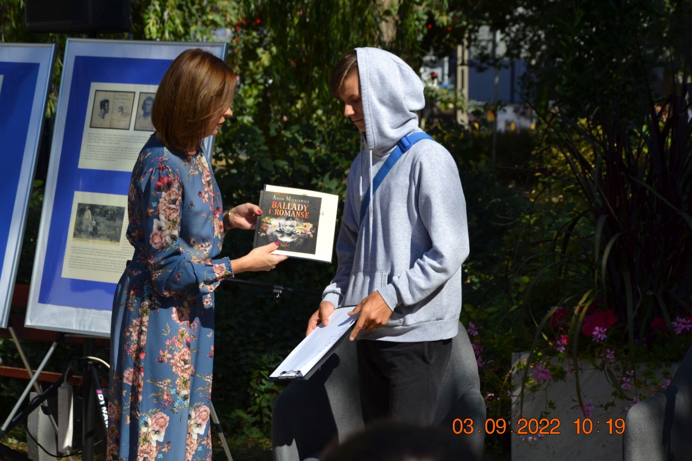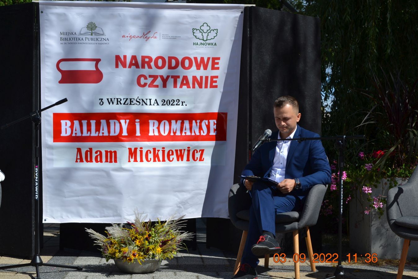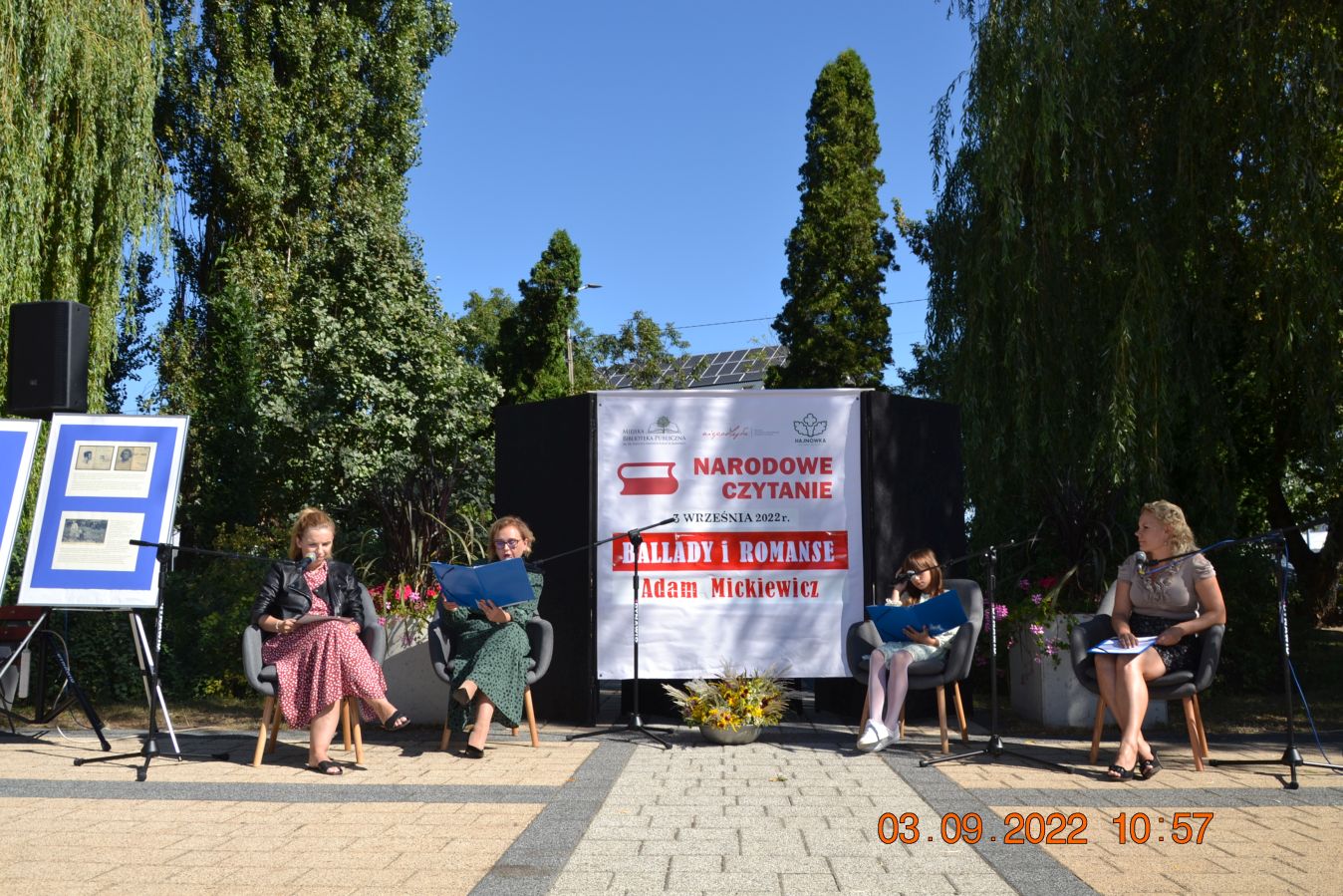 Tegoroczną lekturą były „Ballady i romanse” Adama Mickiewicza, wydane dwieście lat temu w Wilnie, które wyznaczają początek polskiego romantyzmu i po dziś dzień zachwycają wyjątkową aurą, niezrównanymi opisami natury i mądrością opartą na ludowej prawdzie. W pięknej scenerii skweru, otuleni ciepłem wrześniowego słońca, nasi czytający zaprezentowali utwory z tomu „Ballad i romansów”, zachwycając warsztatem i dojrzałością interpretacji. Mogliśmy wysłuchać „Świtezianki” w wykonaniu burmistrza Jerzego Siraka, wice starościny Joanny Kojło i wójt gminy Hajnówka – Lucyny Smoktunowicz. Balladę „Powrót taty” przeczytali podopieczni Warsztatu Terapii Zajęciowej, „Kurhanek Maryli” wybrzmiał w interpretacji przedstawicieli Środowiskowego Domu Samopomocy. Z kolei „Rybkę” zaprezentowała delegacja Polskiego Związku Niewidomych Koła Terenowego w Hajnówce, odczytując fragment tekstu napisaną alfabetem Braille’a. Tegoroczna edycja jeszcze mocniej utwierdziła nas w przekonaniu, że mamy niezwykle utalentowaną młodzież szkolną. Doskonała interpretacja „Pani Twardowskiej” uczennic ze Szkoły Podstawowej Nr 3, zaskakująco dojrzałe wykonanie mrocznej ballady „Lilije” przez Małgorzatę Durzyńską – uczennicę Szkoły Podstawowej Nr 1, czy „Dudarza”, którego odczytali przed publicznością uczniowie Szkoły Podstawowej Nr 2 Michał Zajkowski i Kajetan Szwed, napawają dumą i satysfakcją.