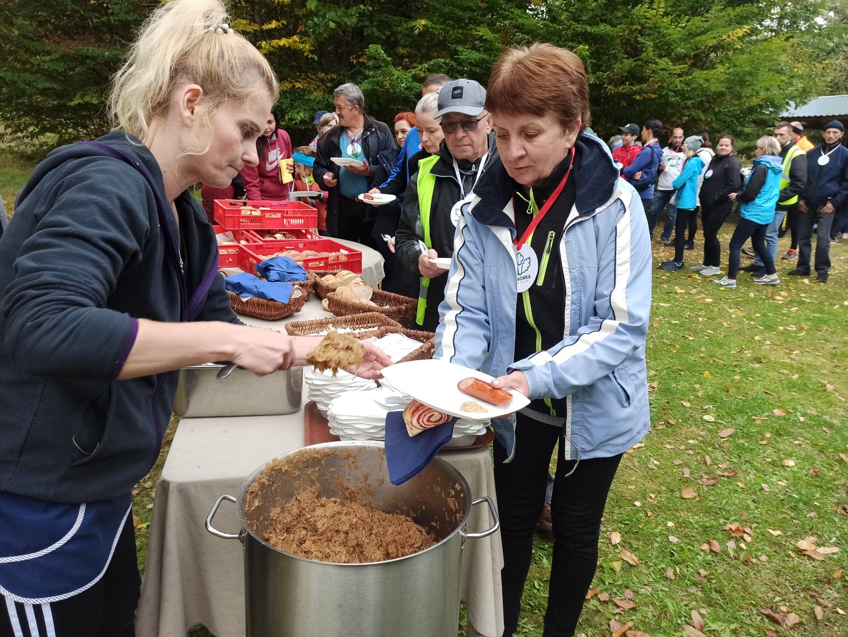 Miłośnicy aktywnego wypoczynku zebrali się o godz. 9.30 na parkingu przy ulicy Celnej, gdzie burmistrz miasta Jerzy Sirak i dyrektor biblioteki Agnieszka Kazberuk, powitali uczestników rajdu, życząc im udanej imprezy. Rowerowy peleton wyruszył trybą leśną w kierunku Bud, gdzie znajduje się symboliczny grób plutonowego Bolesława Bierwiaczonka, żołnierza, który zginął w trakcie walk o Hajnówkę 17 września 1939 r. Uczestnicy po ukończeniu trasy otrzymali pamiątkowe medale, a następnie udali się pod pomnik Bierwiaczonka, przy którym drużyna harcerzy ze Szkoły Podstawowej Nr 3 pełniła honorową wartę. Po złożeniu kwiatów i uczczeniu minutą ciszy pamięci żołnierzy poległych w czasie II wojny światowej, wszyscy udali się do zajazdu „U kolarza”, gdzie czekał na nich pyszny bigos i gorąca kiełbasa. Tradycją rajdów stało się wspólne śpiewanie pieśni patriotycznych, do których przygrywała na akordeonie Pani Kleta Sokołowska. Udział w rajdzie rowerowym to doskonała okazja do międzypokoleniowej integracji, a także utrwalania pamięci historycznej. Po dwuletniej przerwie w organizacji tego wydarzenia spowodowanej pandemią koronawirusa, widzimy w społeczeństwie silną potrzebę integracji i wspólnego spędzania czasu na łonie natury. Wszystkim uczestnikom dziękujemy i zapraszamy za rok.