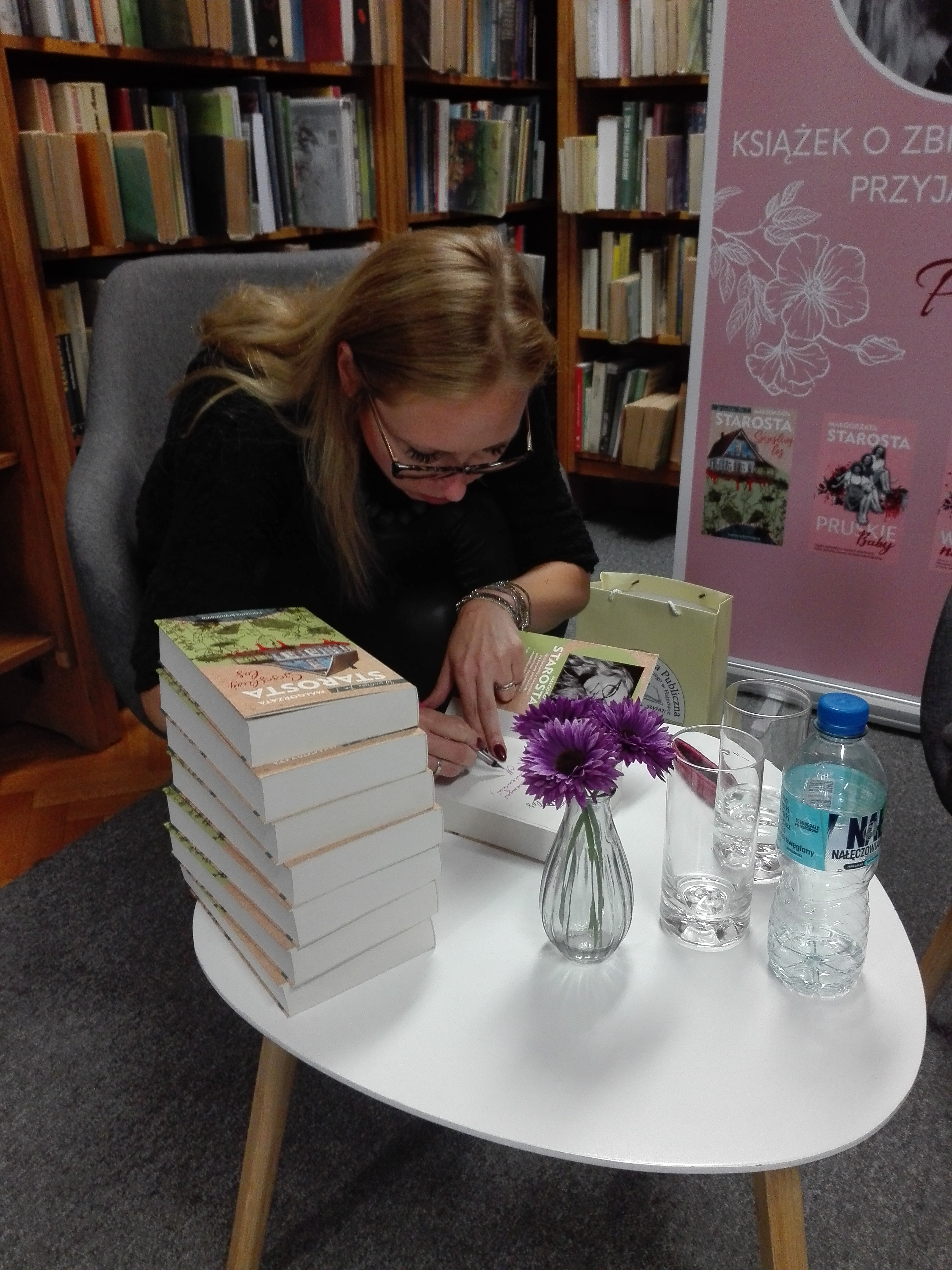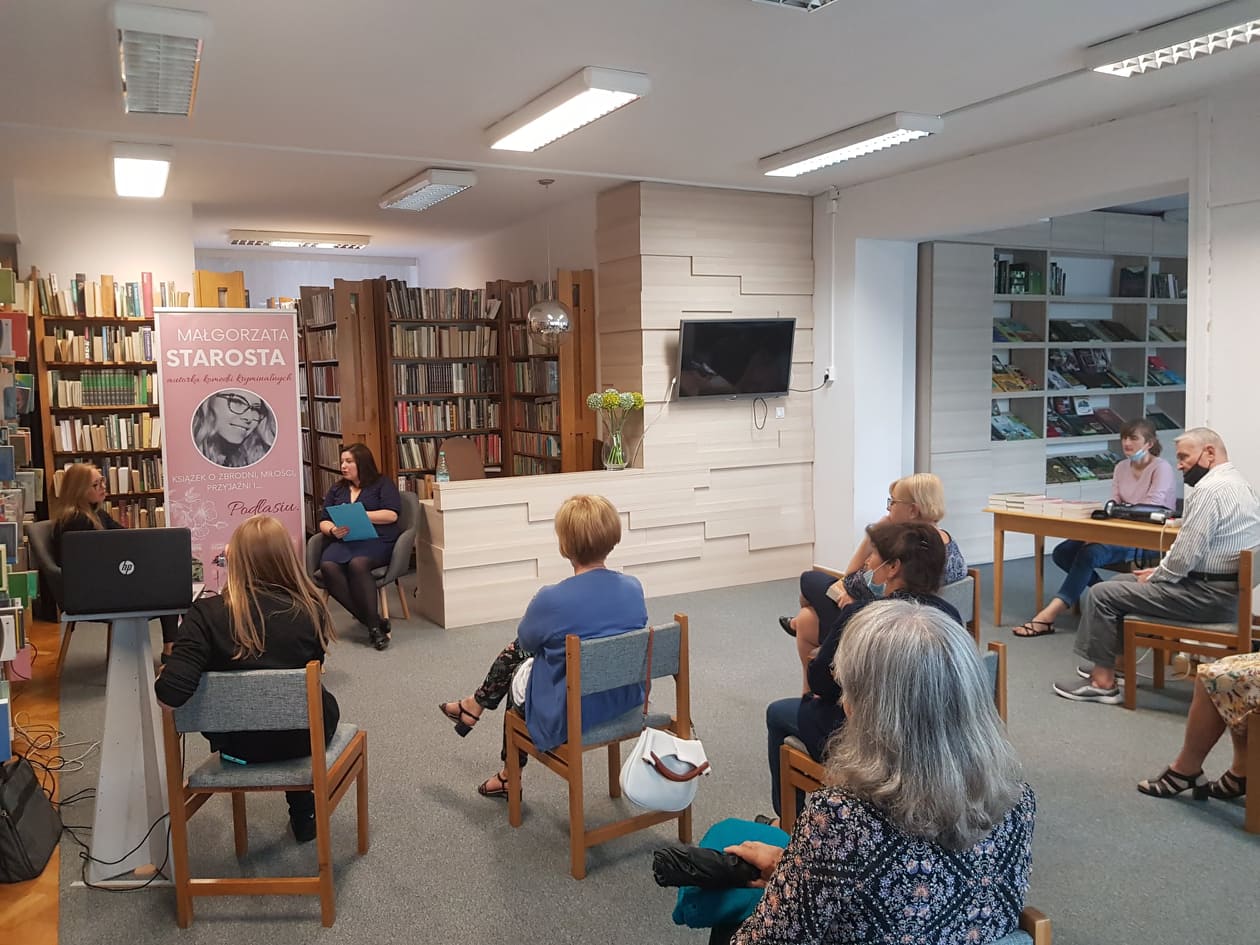 W dniu 6 sierpnia 2021 r. w Czytelni dla Dorosłych Miejskiej Biblioteki Publicznej w Hajnówce odbyło się spotkanie autorskie z Małgorzatą Starostą – autorką komedii kryminalnych, m. in. trzytomowego cyklu pt. „Pruskie baby”, oraz rozpoczynającego nowy cykl „Szczęśliwego losu”.