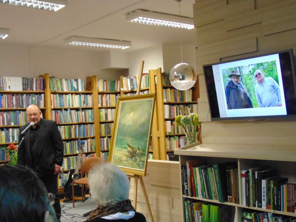 Artysta zaprezentował swój dorobek, łącznie z najnowszymi pracami, wśród których dostrzec możemy między innymi pejzaże Puszczy Białowieskiej i okolic oraz architekturę sakralną. Wieczór rozpoczęła dyrektor biblioteki Maria Skwarczyńska, która po serdecznym przywitaniu gości przybyłych na spotkanie przedstawiła biografię artysty oraz opowiedziała o jego dorobku twórczym. W tle wyświetlane były zdjęcia prezentujące plenery malarskie, w których Pan Piotr uczestniczył, a także część obrazów, które stworzył. Niezwykłą atmosferę wernisażu uzupełnił mini recitale Zbigniewa Budzyńskiego oraz samego bohatera wieczoru – Piotra Gagana, którzy swoimi występami artystycznymi jeszcze mocniej rozbudzili wyobraźnię publiczności obecnej na wernisażu. Wystawę prac hajnowskiego artysty można oglądać w Małej Galerii MBP i Czytelni dla Dorosłych do końca lutego 2020 r.
