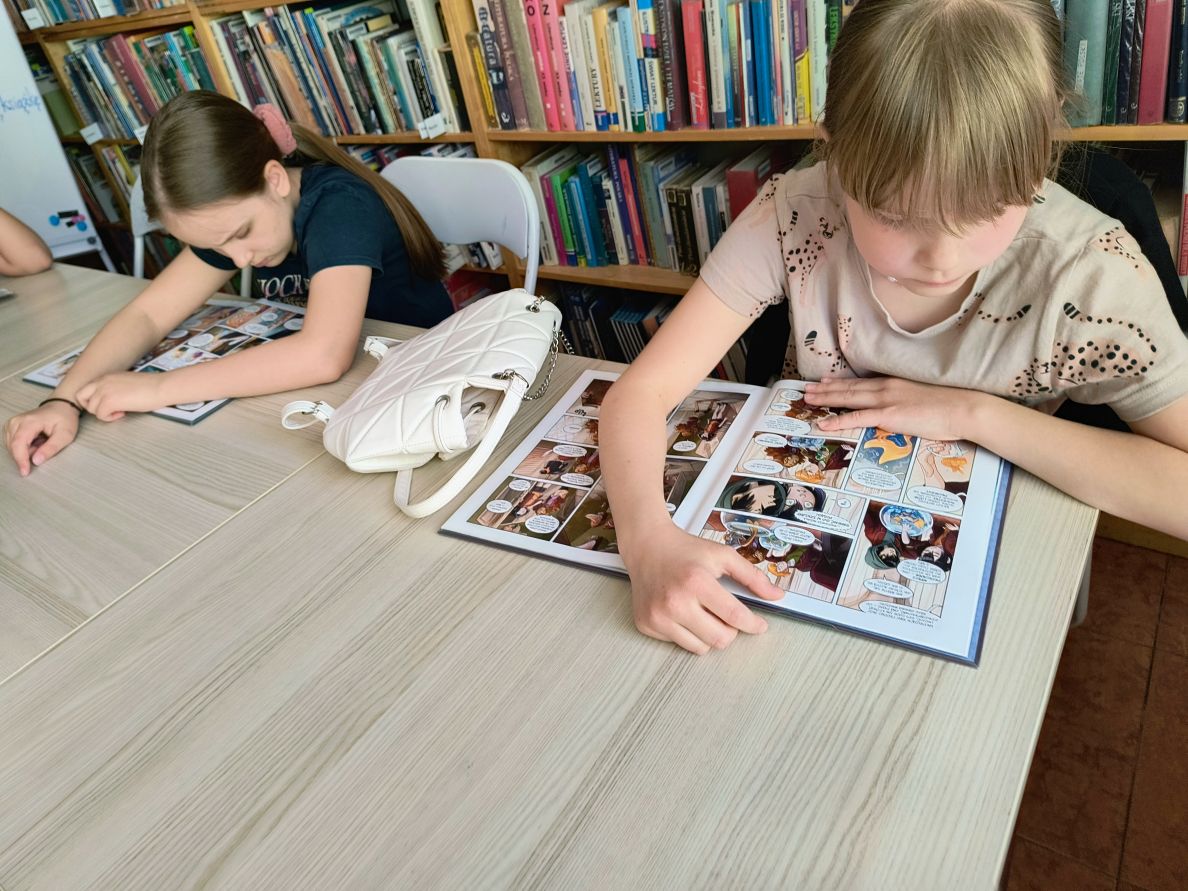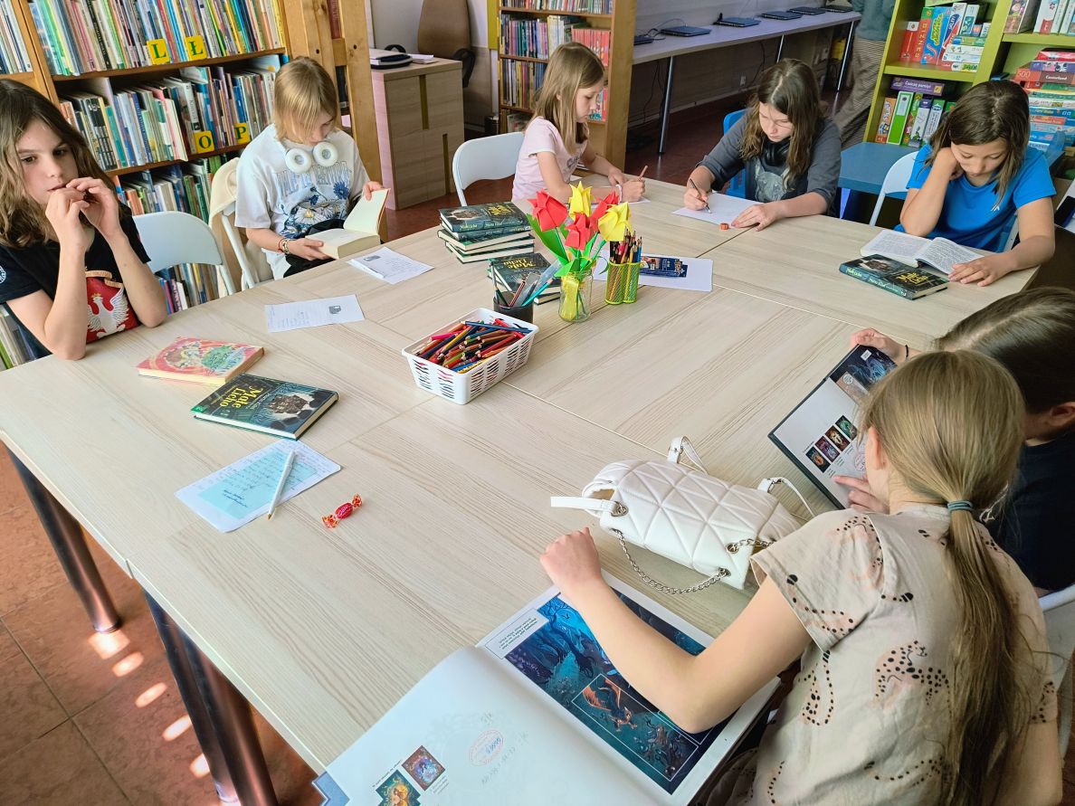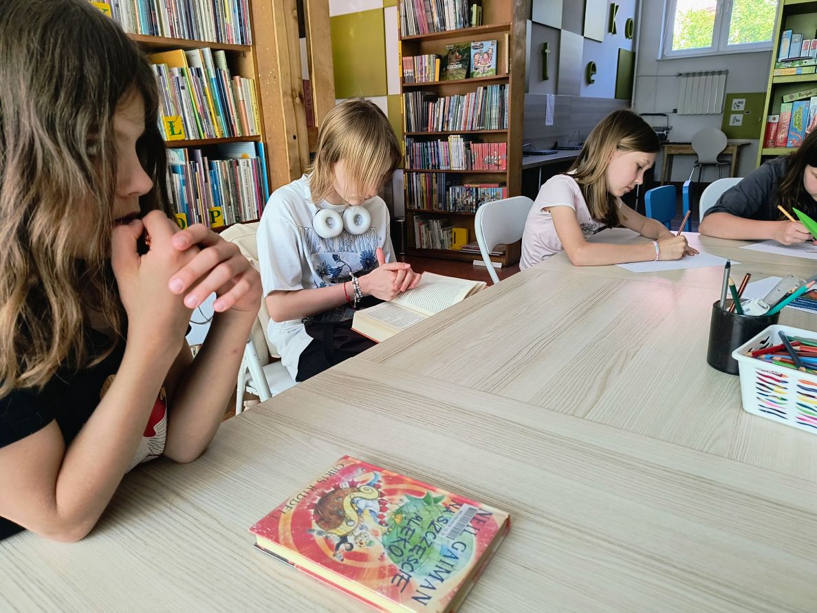 Na zakończenie spotkania każdy uczestnik samodzielnie wybrał książkę z naszej wypożyczalni, którą przeczyta i o niej opowie na kolejnym spotkaniu DKK. Niektórzy wykonali także obrazek do książki.