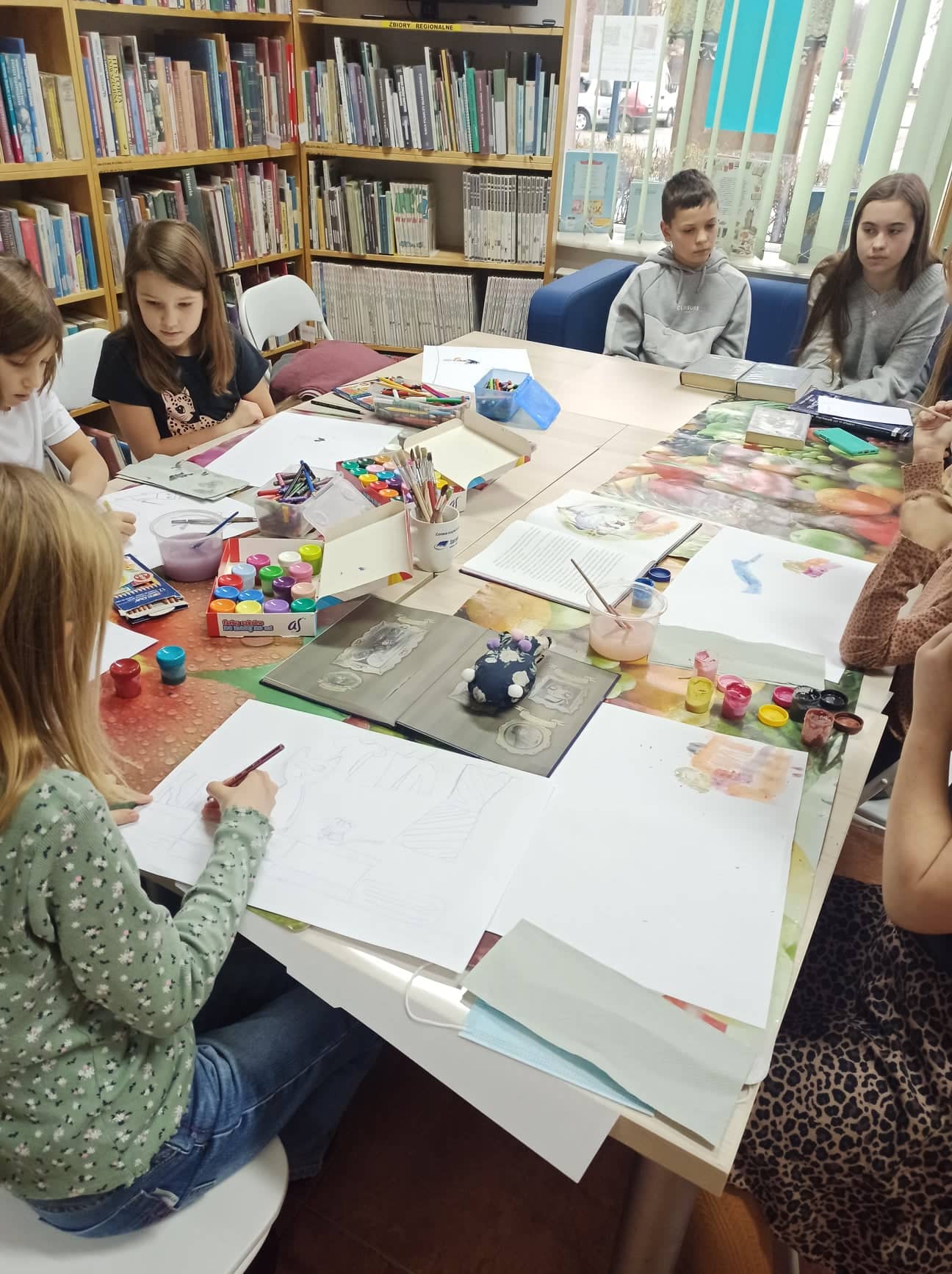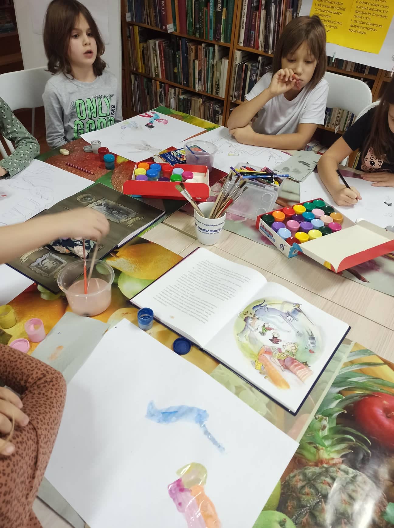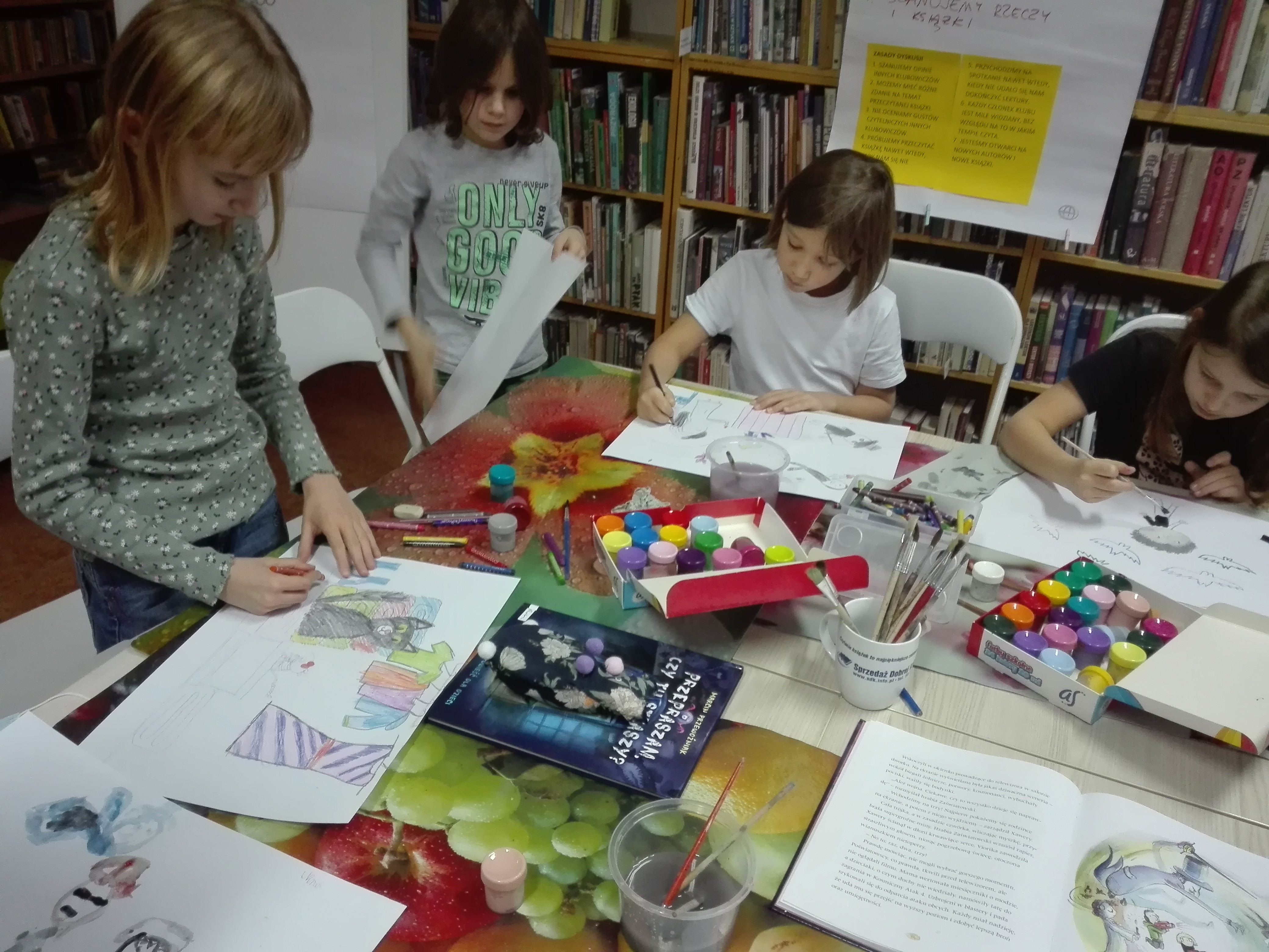 Na zakończenie dzieci młodsze wykonały ilustracje do książki, a w tym samym czasie dwoje starszych klubowiczów ustaliło spotkanie DKK dla młodzieży. Na razie starsza grupa DKK liczy dwóch klubowiczów, ale chętnie przyjmie kolejne osoby lubiące czytać i rozmawiać o książkach.