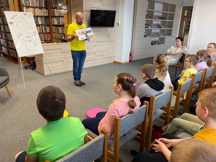 13 maja br. odbyły się warsztaty edukacyjne z panem Wojciechem Mikołuszką – dziennikarzem i przyrodnikiem, autorem książek popularno-naukowych dla dzieci i dorosłych. Spotkanie autorskie dla dzieci skupiało się wokół postaci bociana z książki autora pt. „Wojtek”.